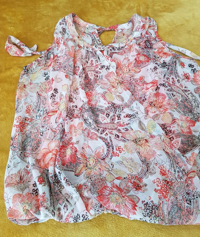 #haut #blouse #femme en #voile #doublée (un bretelle intégré au dessous) Imprimé #fleurie Véritable #vintage #taille42 en #tresbonetat (légers imperfections mais rien de bien méchant!) #tailleXL(mannequin taille xs/S pour avoir une idée) #tailleXLmelodyriri31 #vintagemelodyriri31