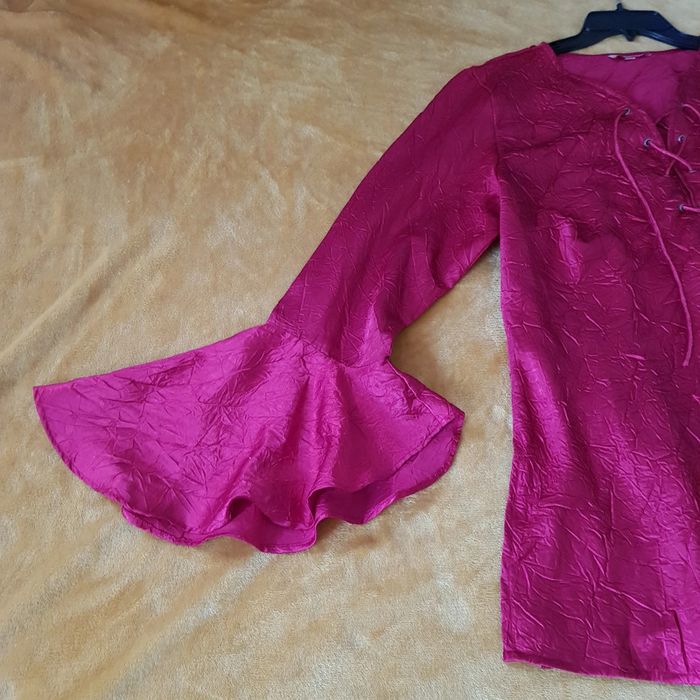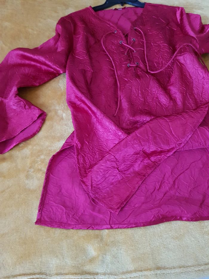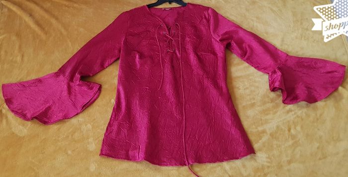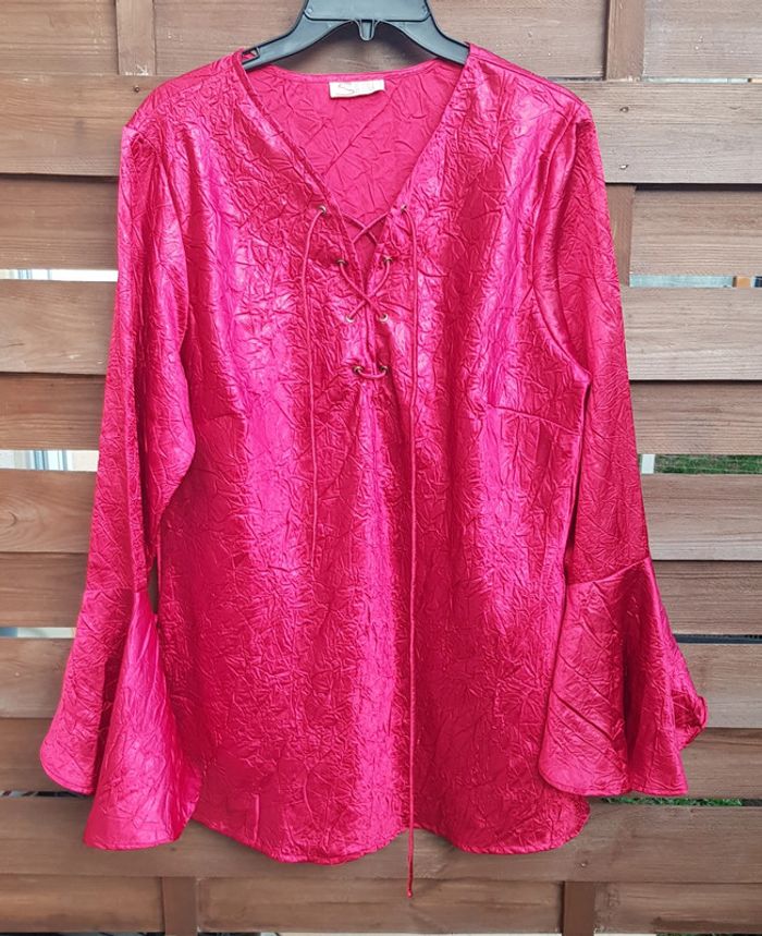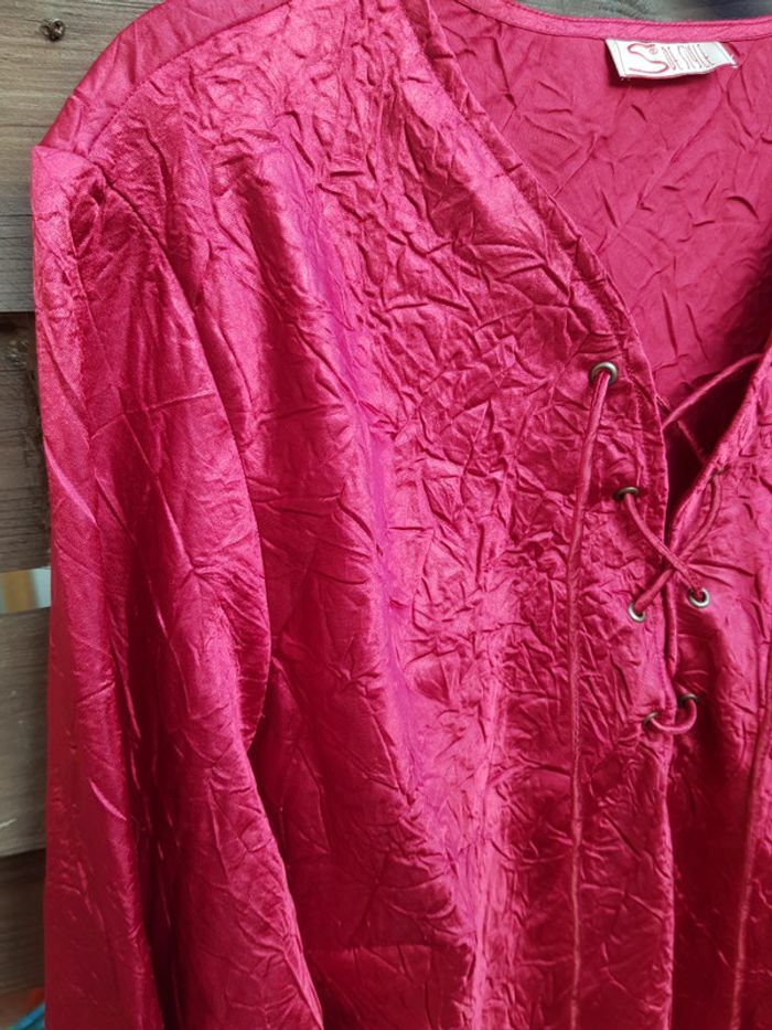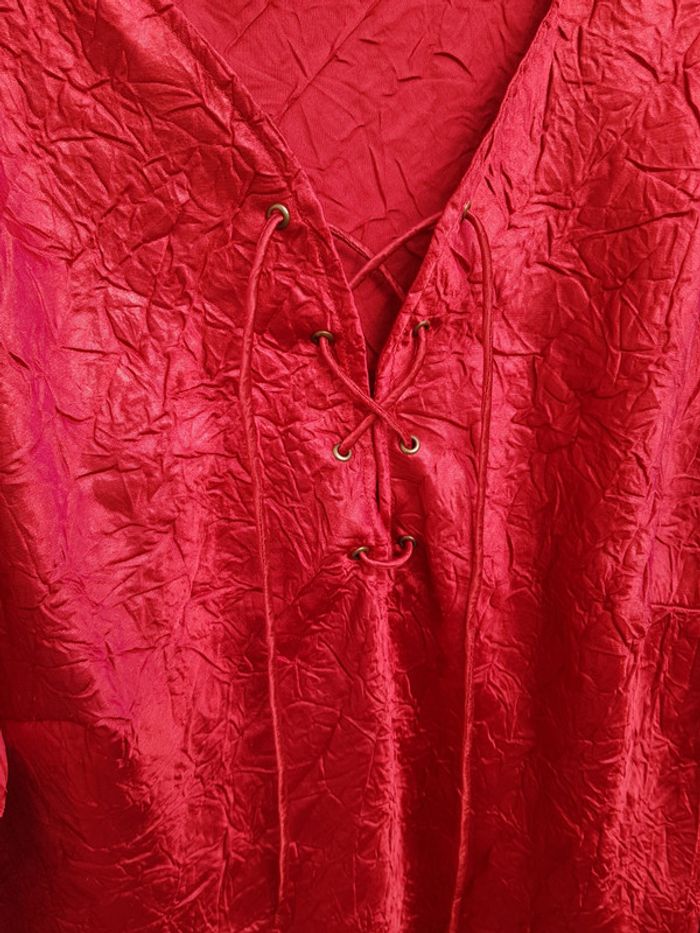 #blouse #chemisier #femmz #rétro #froissée (❗style froissé et non pas repasser!) nouer #satinée Manches volantées Véritable #vintage #taille46 en #tresbonetat (quelques légers imperfections mais rien de bien méchant!) Couleur rouge #taille3XLmelodyriri31 #vintagemelodyriri31