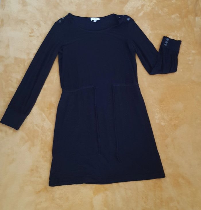 #robe #femme #noir #legere #fluide #ceinturée à la taille Avec joli #boutonnage #officier au niveau des épaules et manches #taille38 #taille40 de chez #undeuxtrois