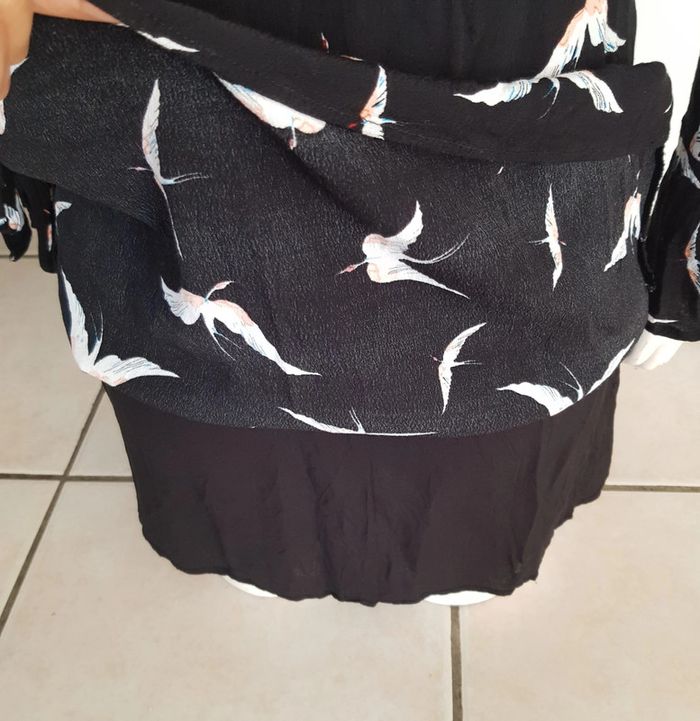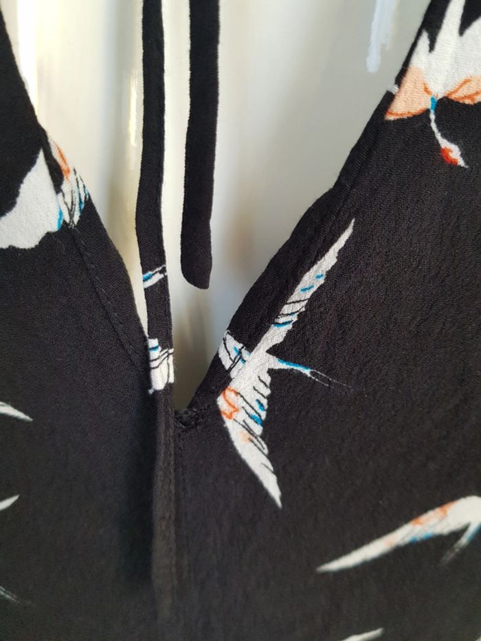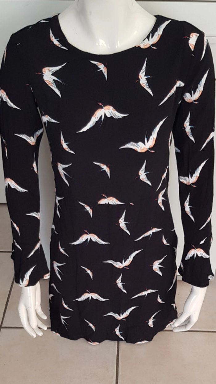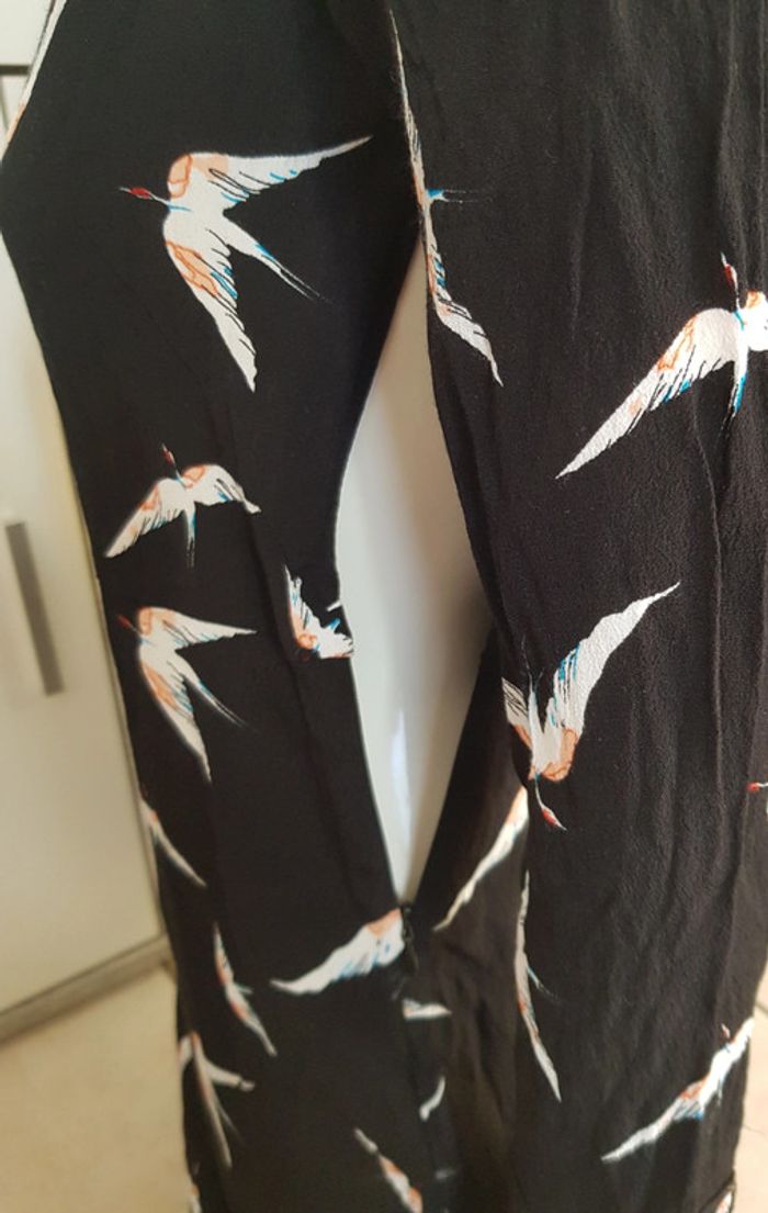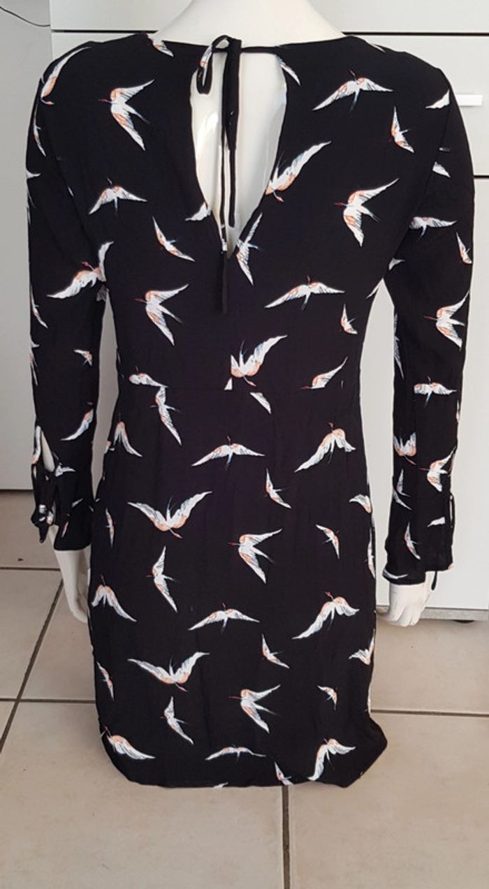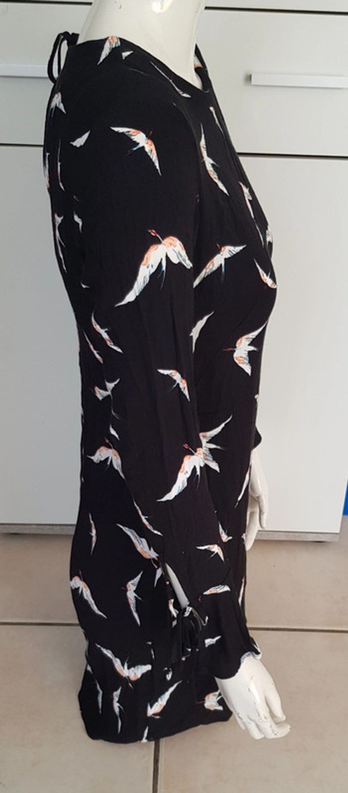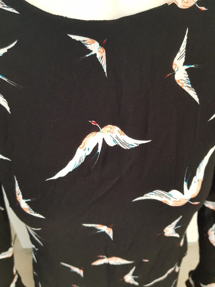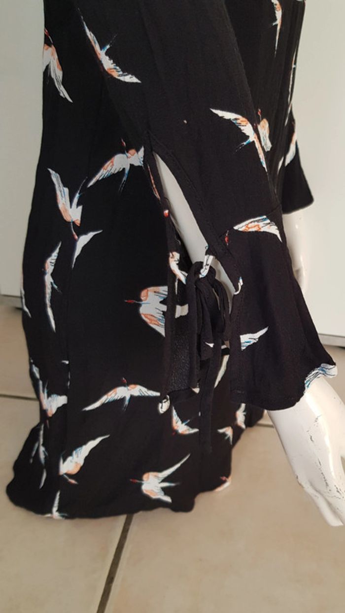 #robe #femme avec #manches #volantées en bas à #nouer Col v avec lien à nouer au dos Imprimé #oiseaux 100% #viscose Bas de la robe #doublé #taille36 Defauts: voir 2 dernières photos! #tailleSmelodyriri31