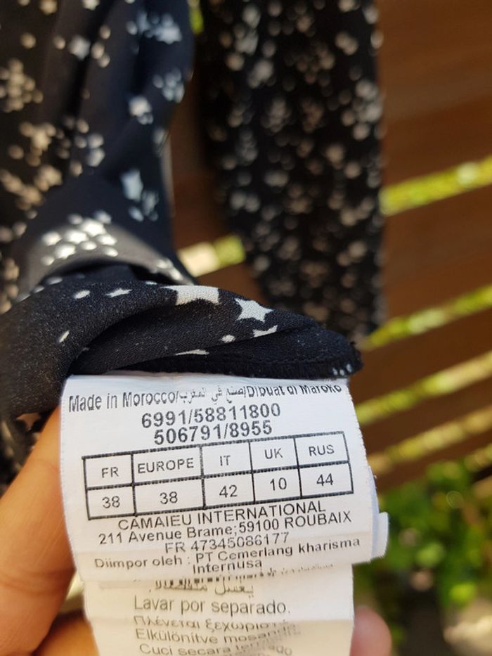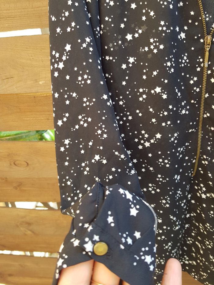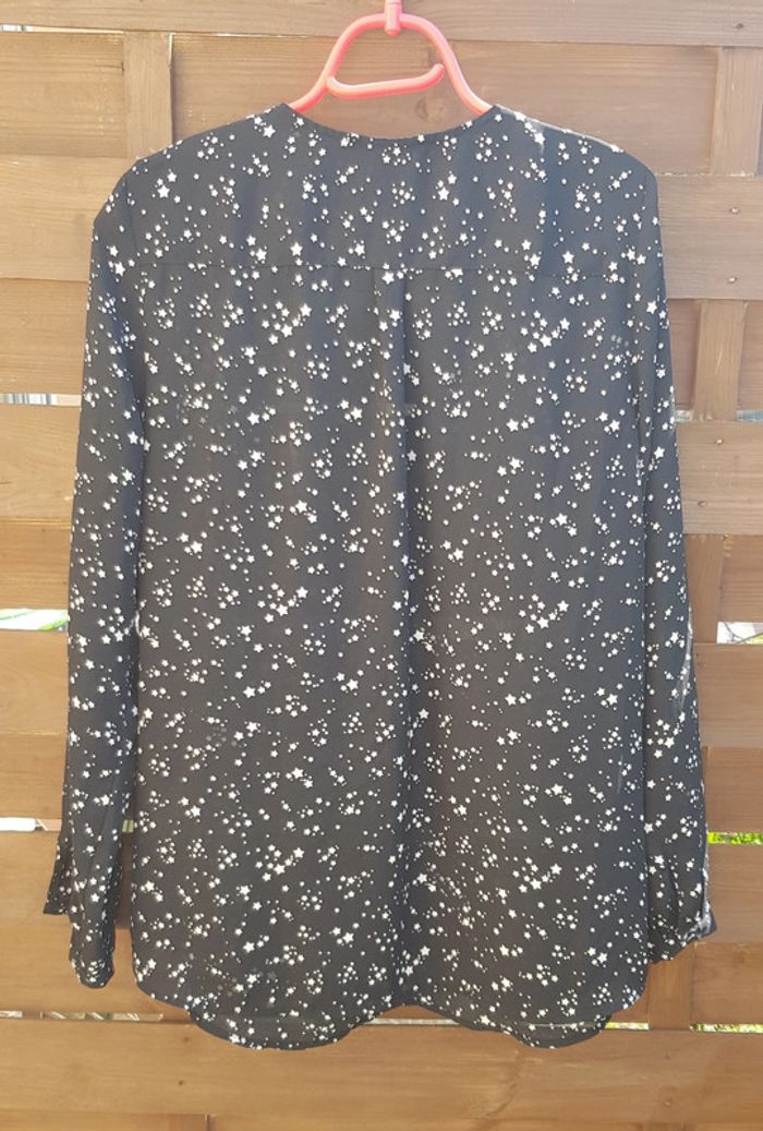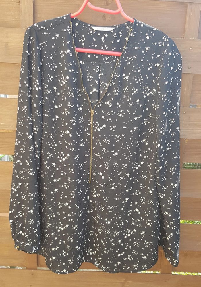 #blouse #femme #zippée imprimée #etoiles Avec manches Légèrement transparente #taille38 de chez #camaieu En #tresbonetat (faut juste remettre un bouton au niveau d'une manche, le bouton est disponible voir derniere photo!) #tailleLmelodyriri31