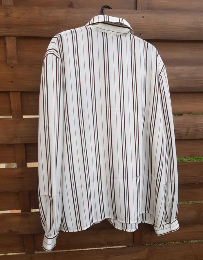 #chemisier #chemise #femme #rayée avec imprimé rose sur le côté au niveau de la poche Véritable #vintage de chez #sergenancel #taille46 en #tresbonetat #taille3XLmelodyriri31 #vintagemelodyriri31