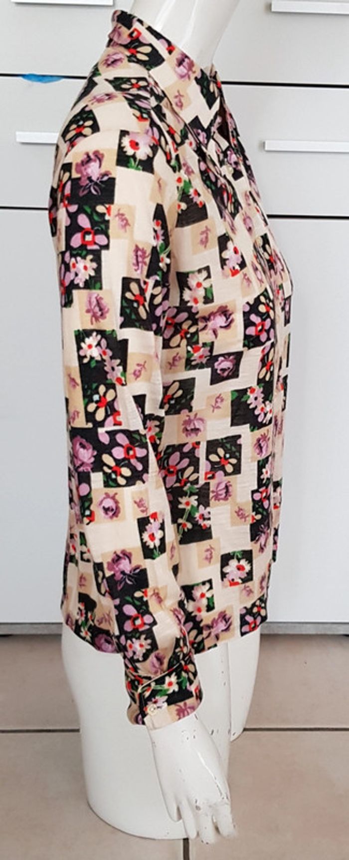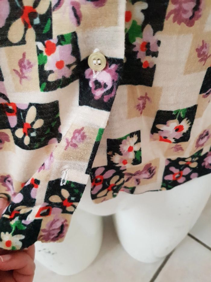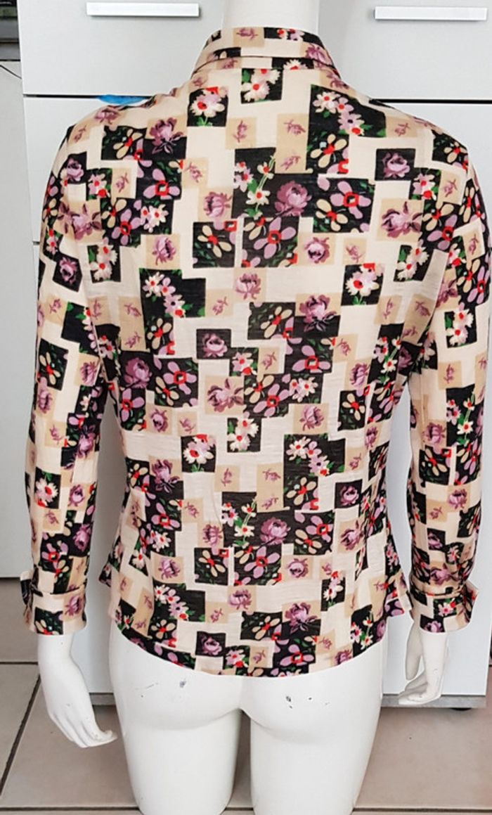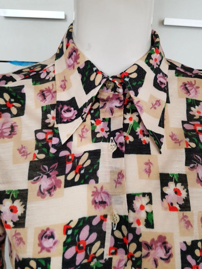 #chemise #femme #rétro imprimé #fleurie Véritable #vintage #fabricationfrancaise Des années 60' Tissu extensible Coupe près de corps (mannequin taille xs/S pour avoir une idée!) Défauts: voir 2 dernières photos! #taille44 #taille2XLmelodyriri31 #vintagemelodyriri31