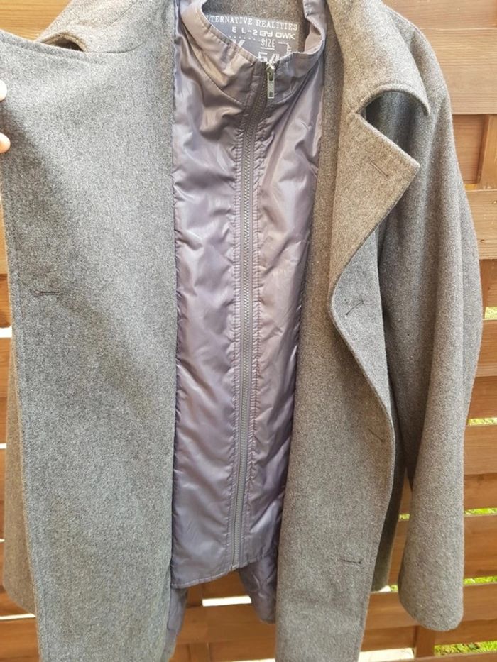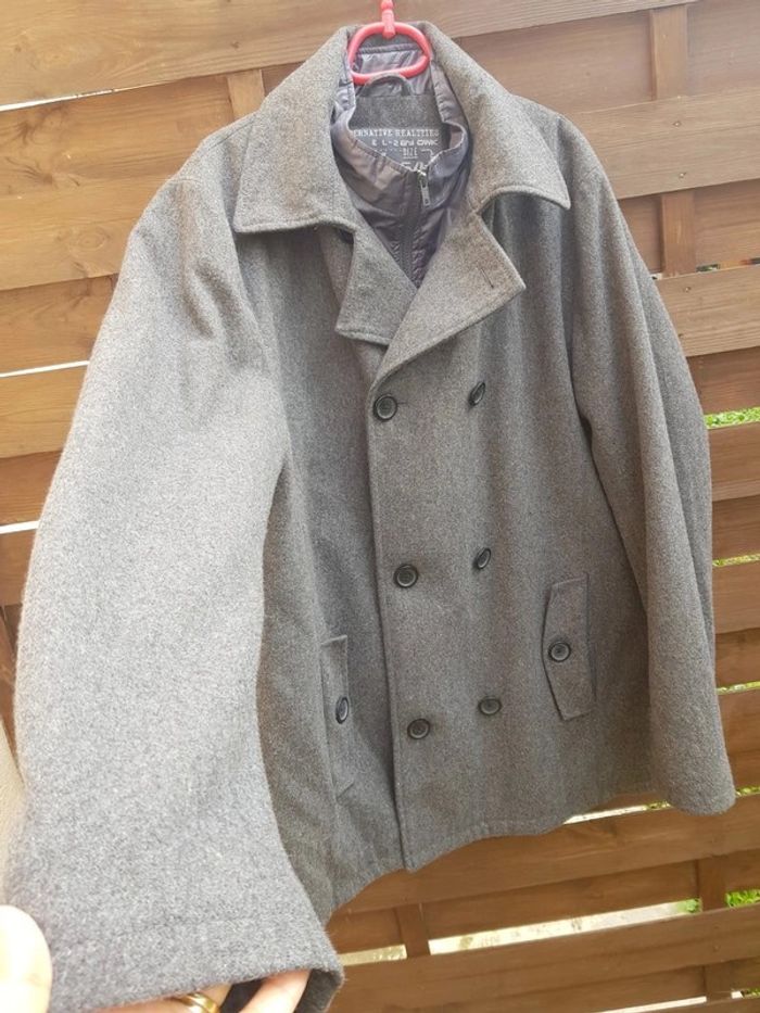 #manteau #cabans #homme #gris Avec 65% #laine (étiquette effacée mais on peux quand même lire un peu😉) En #tresbonetat (présente quelques légers imperfections, manque un bouton qui ne se voit pas car le col tombe dessus ou peut-être remplacé par celui de l'intérieur) Partie métallisé avec fermeture éclaire Taille 54 (correspond à une taille XL: mesures sur photos) #hommesmelodyriri31