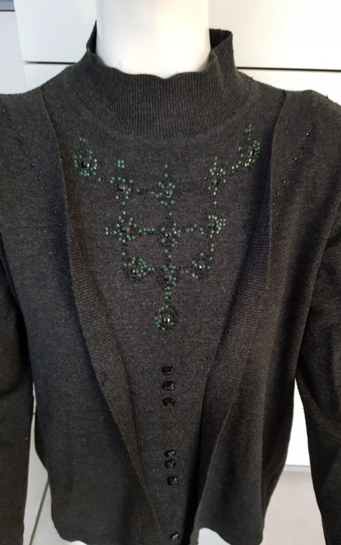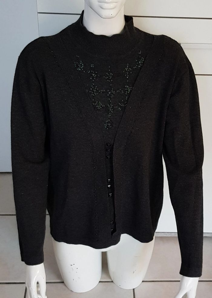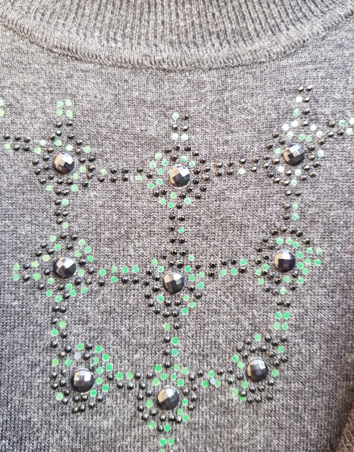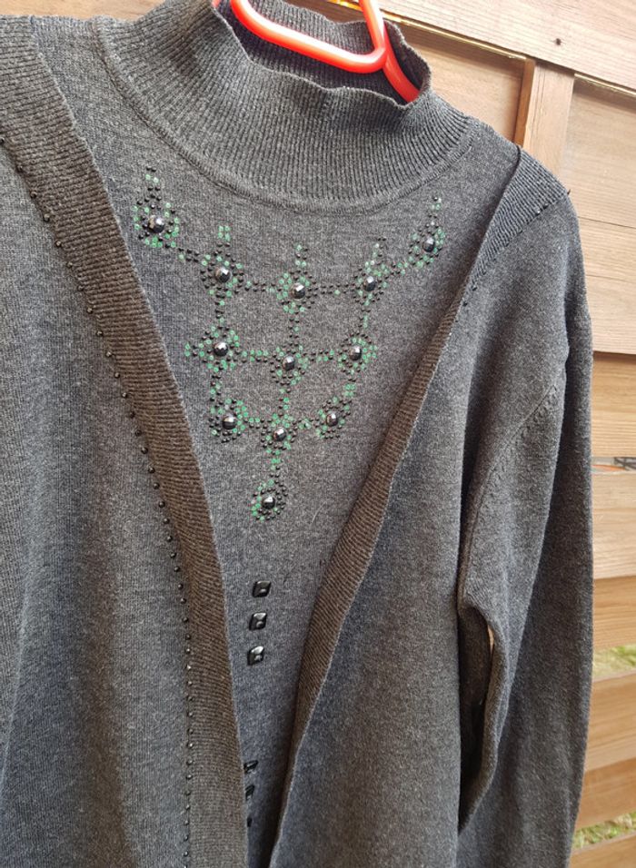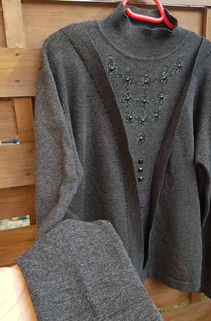 #pull #femme en #maille col montant 80% #laine Couleur gris foncé Véritable #vintage #tailleM #tailleL Defaut au niveau du strass #tailleMmelodyriri31 #tailleLmelodyriri31 #pullmelodyriri31