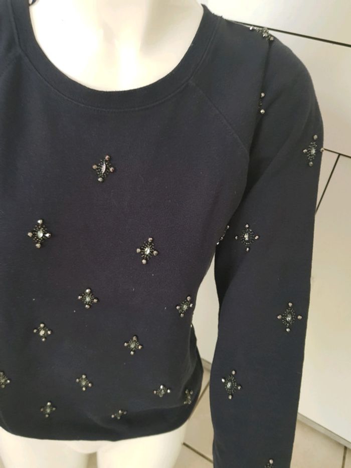 #sweat #femme avec jolie finition en #perles 100% #coton En #tresbonetat (léger imperfection niveau couleur!) #tailleS de chez #etam #tailleSmelodyriri31 #pullmelodyriri31