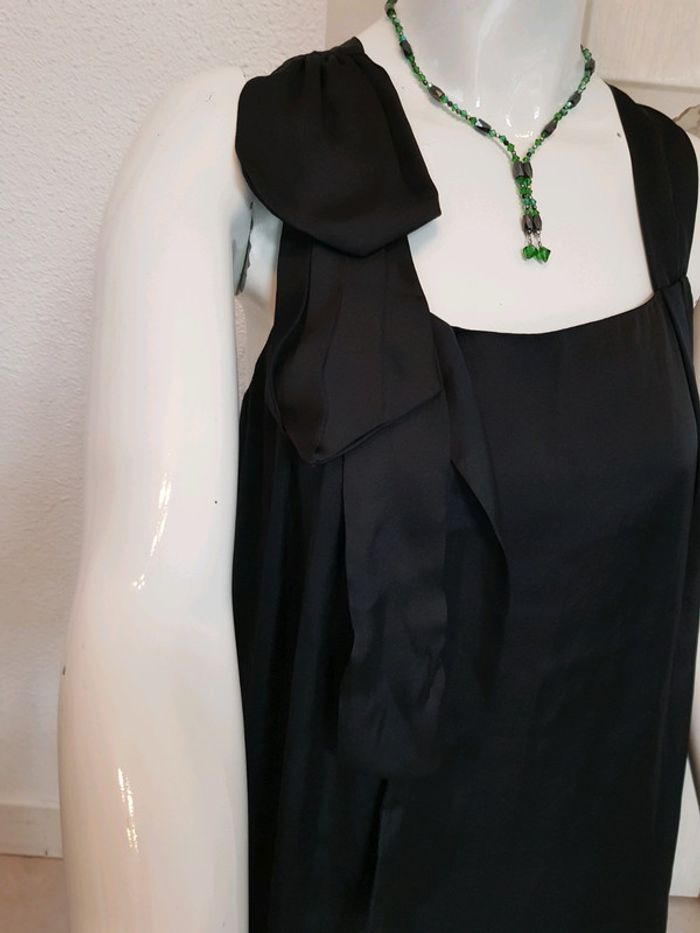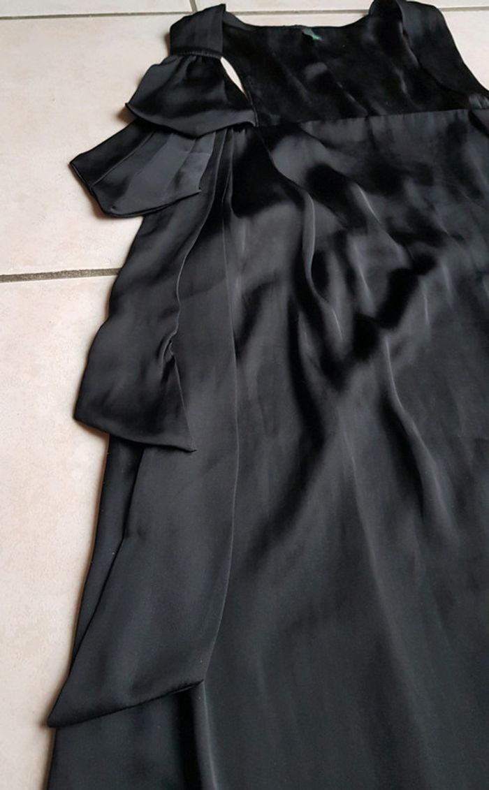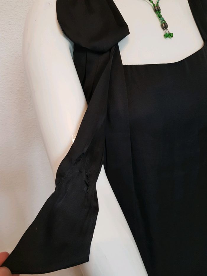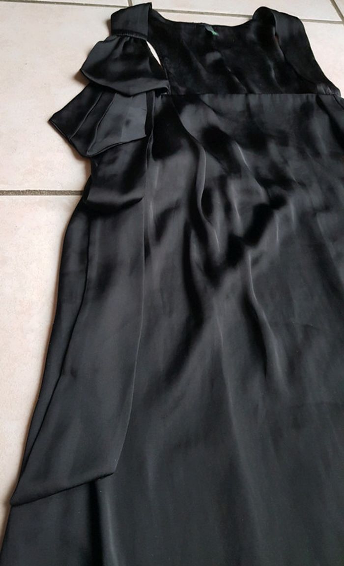 #robe #chic #élégante #satinée #doublée avec joli #noeud qui descend de l'épaule #taille40 (étiquette taille coupée) de chez #benetton En #tresbonetat sauf ça était brûlé avec un bougie, voir les 3 dernières photo facilement réparable en coupant la partie brûlée ( comme montrer dans la dernière photo) #tailleLmelodyriri31