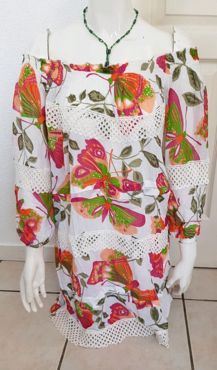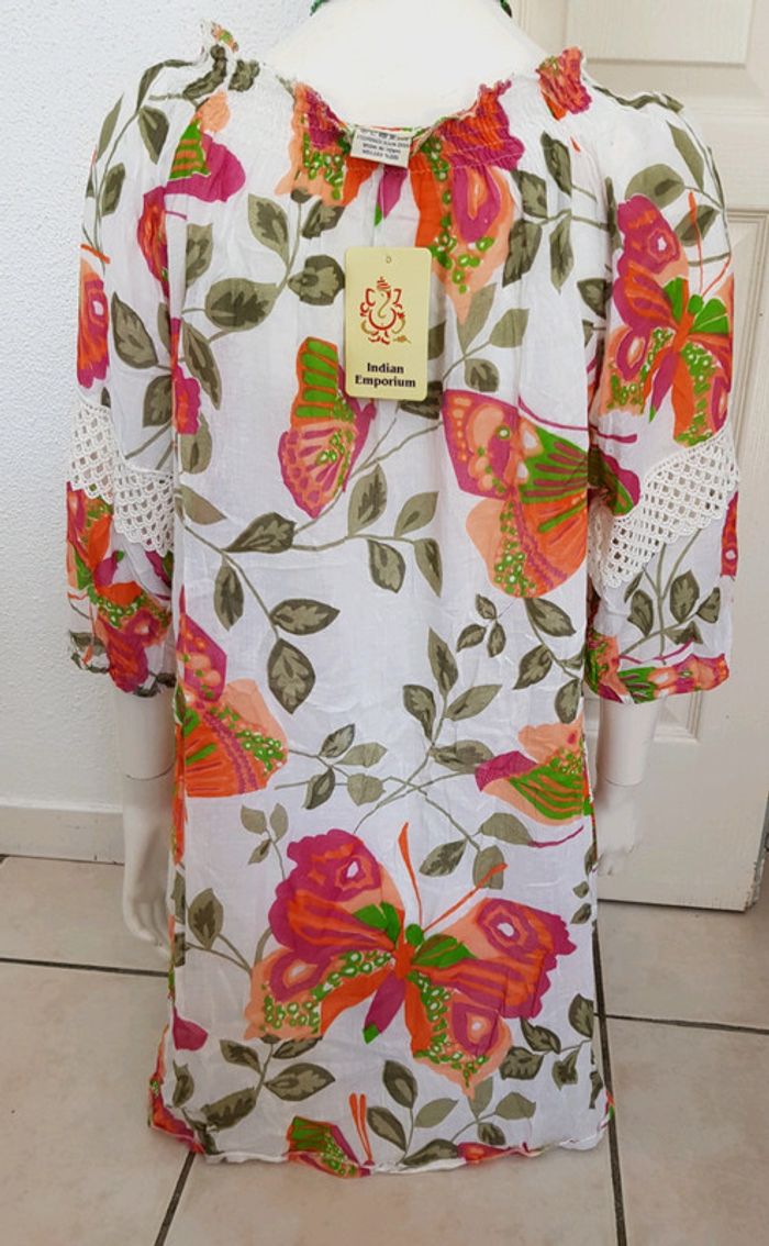 Robe imprimé papillon, finition crochet 100%coton - photo numéro 1