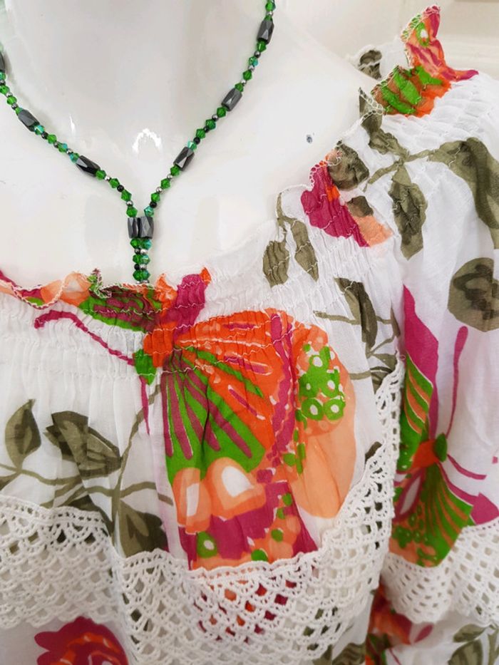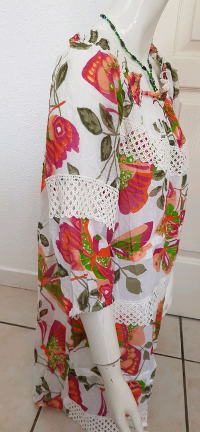 Robe imprimé papillon, finition crochet 100%coton - photo numéro 3