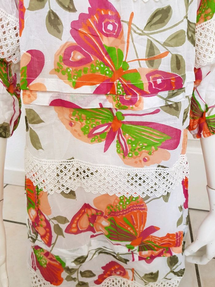 Robe imprimé papillon, finition crochet 100%coton - photo numéro 5