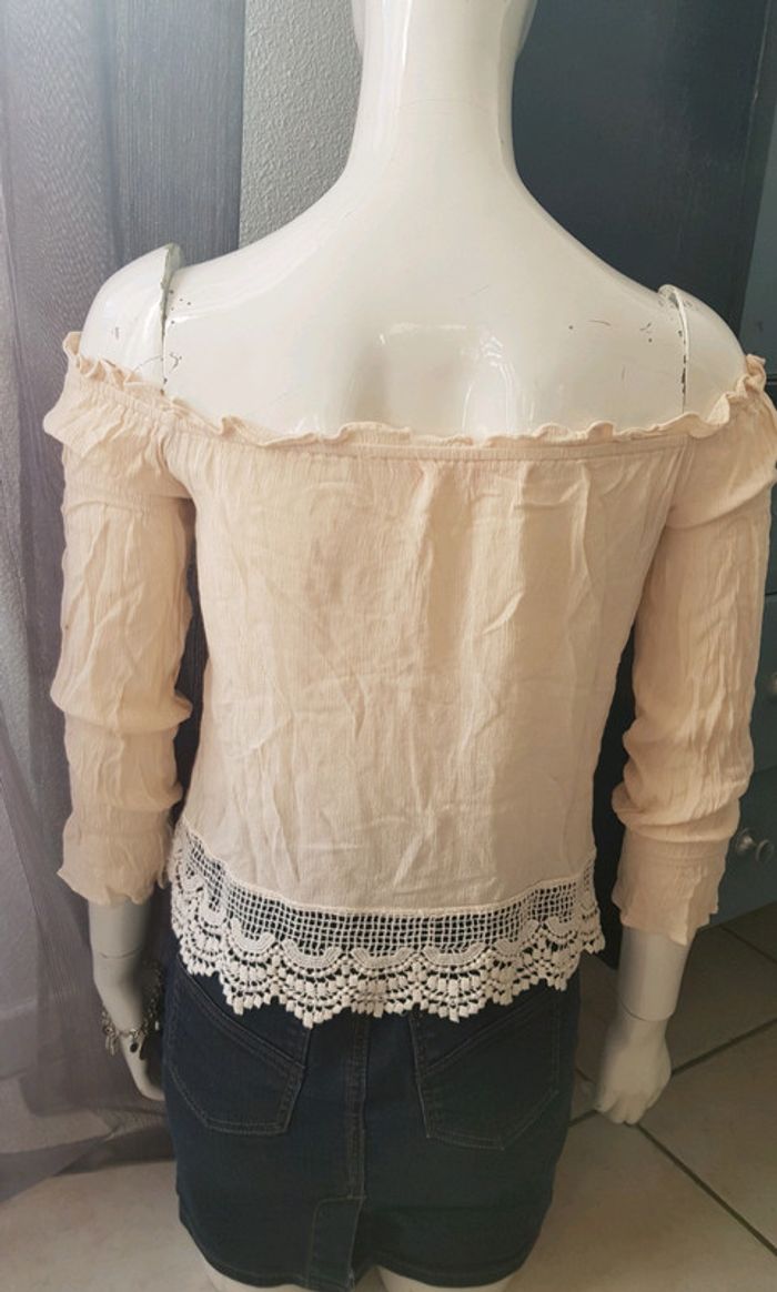 #chemisier #blouse #epaulesdenudées avec nœud #corde , finitions #crochet en bas #tailleS En #tresbonetat #tailleSmelodyriri31