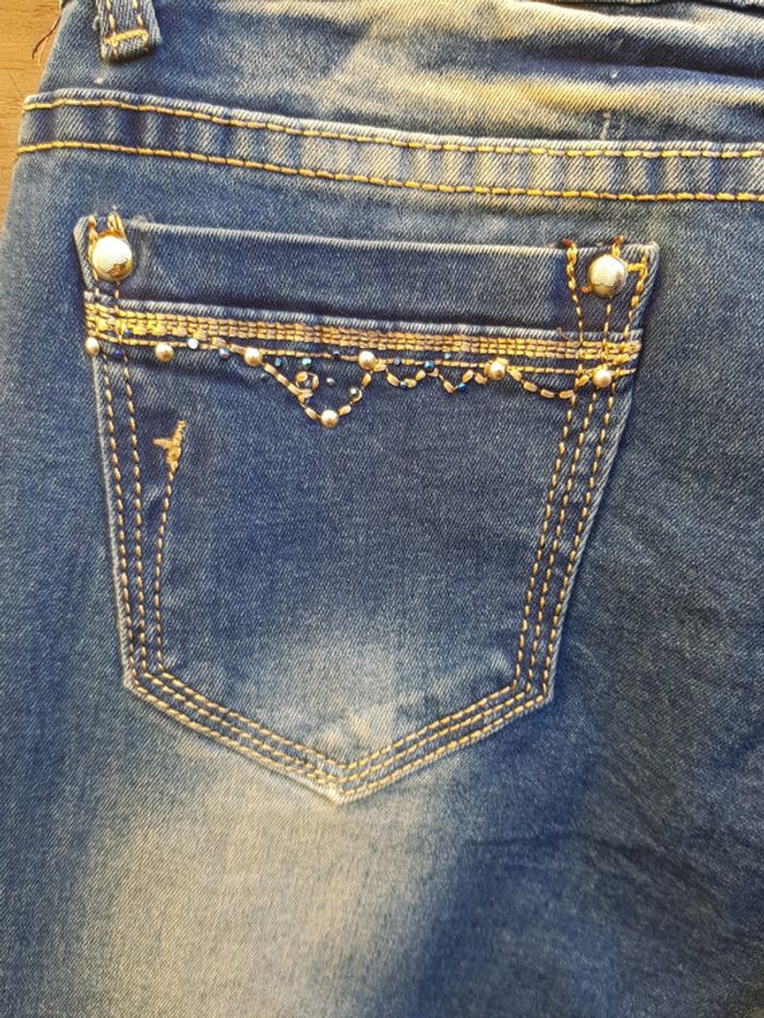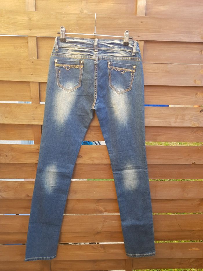 #jean #femme 95% #coton #délavé véritable #vintage avec finition perles au niveau des poches arrières e #tresbonetat #taille36