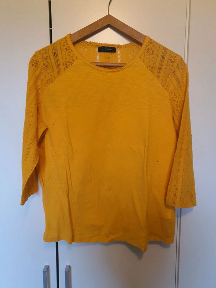 Tee-shirt manches 3/4, dentelle sur les manches, les épaules et le dos, neuf, L.