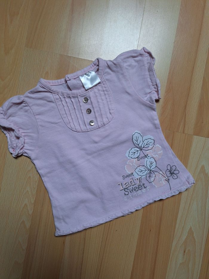 FILLE 6 MOIS N°784 tee shirt rose Imprimé Bouton au dos Taille 6 mois 1€ #kelly_fille6mois