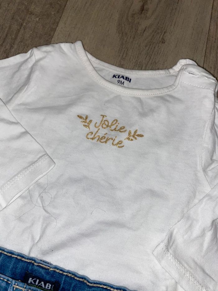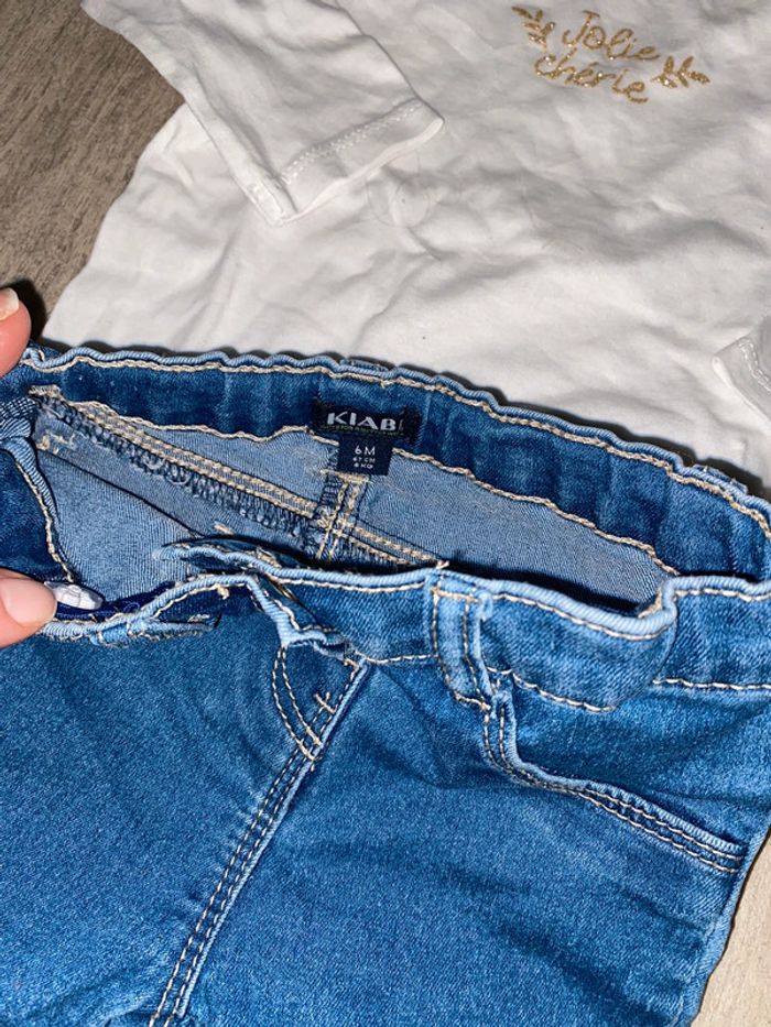Comme neuf. J’offre le petit t-shirt 9 mois. Le jeans taille plutôt bien et le haut petit donc ça va ensemble. Profitez des remises sur lot #lolita59830t6m