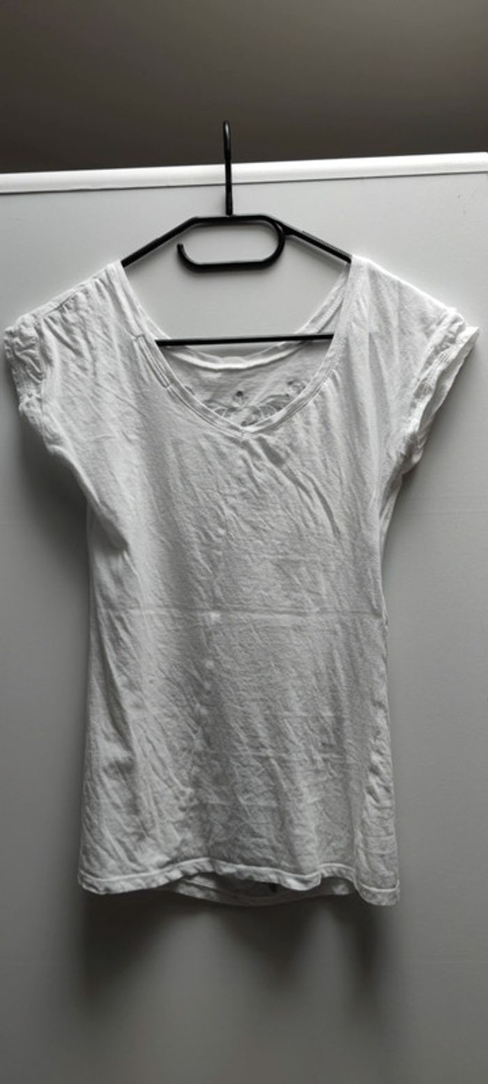 T-shirt blanc et noir col en v dans le dos Marque Women Only Taille 1