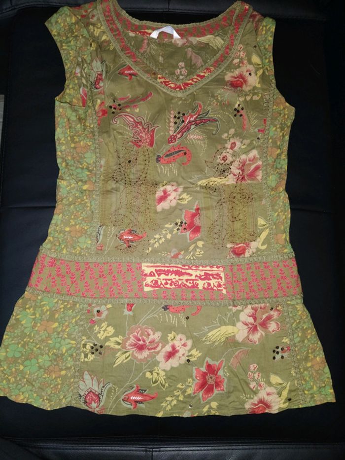 A vendre tunique kaki a fleur en bon état de Promod Taille 38