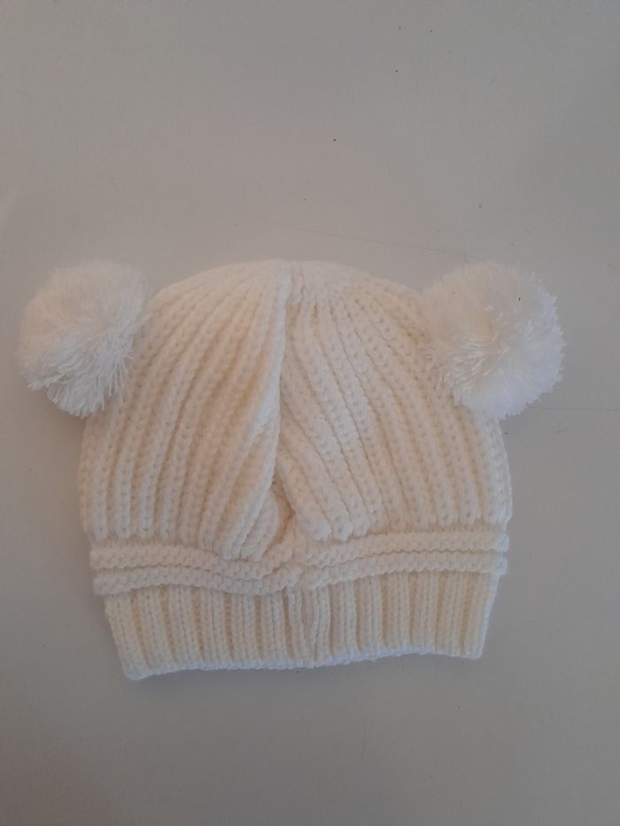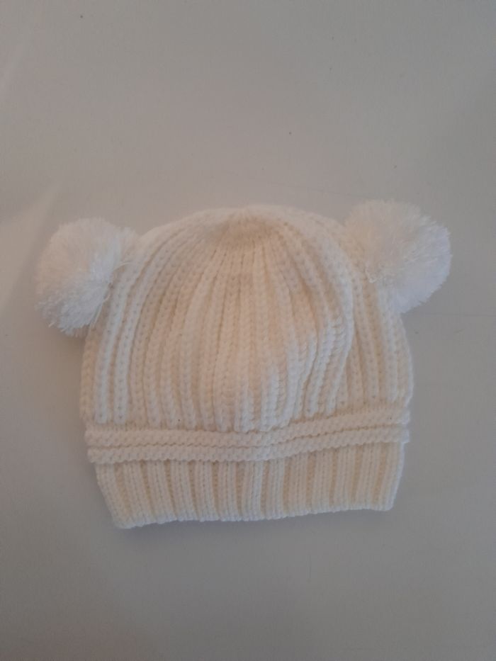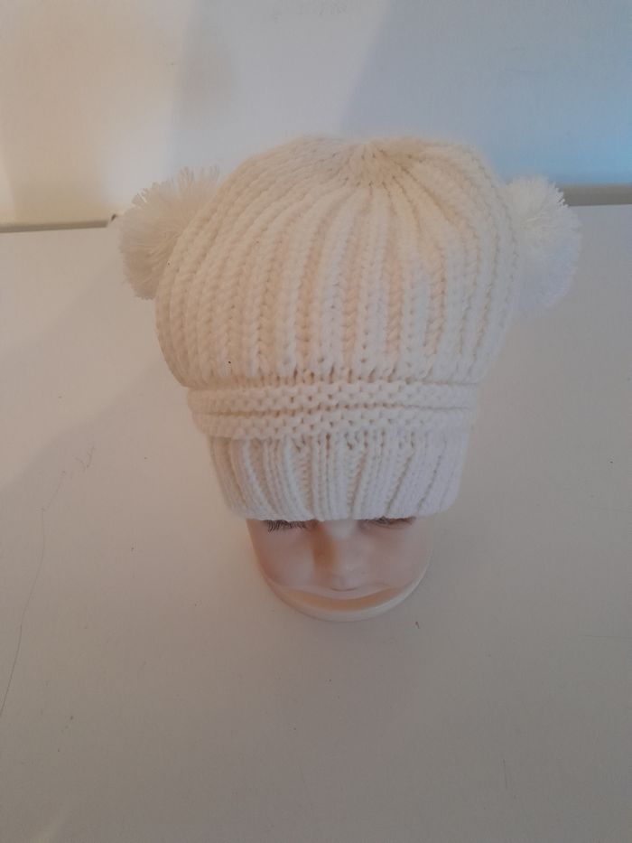 Bonnet pompons blanc Taille 2-3ans Taille élastique Neuf, jamais porté Mixte