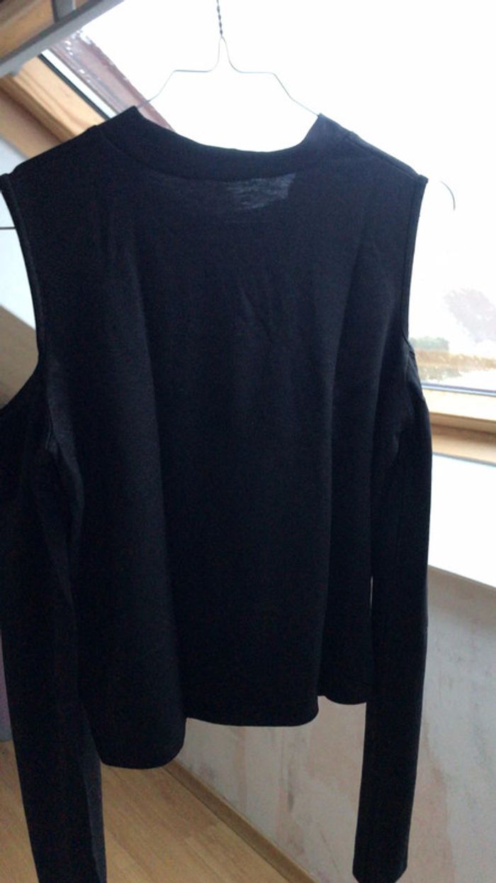 T-shirt à manches longues avec les épaules dénudées, noir avec de toutes paillettes NEUF !! Taille : M Possibilité d’offre et de lot.