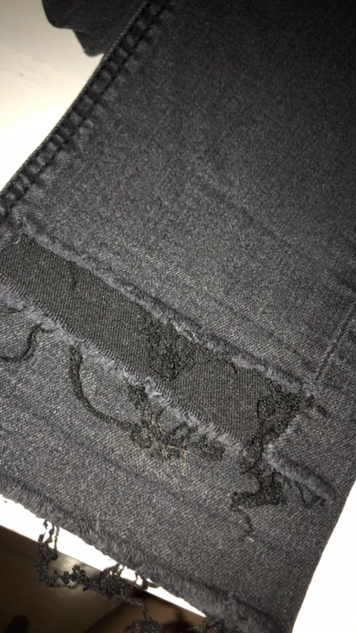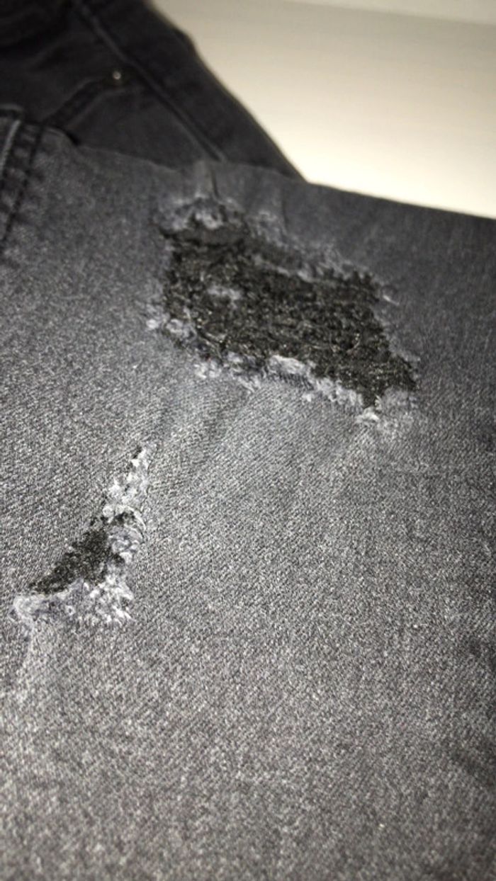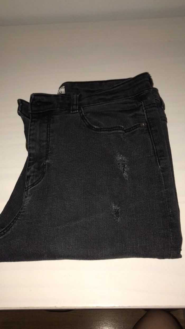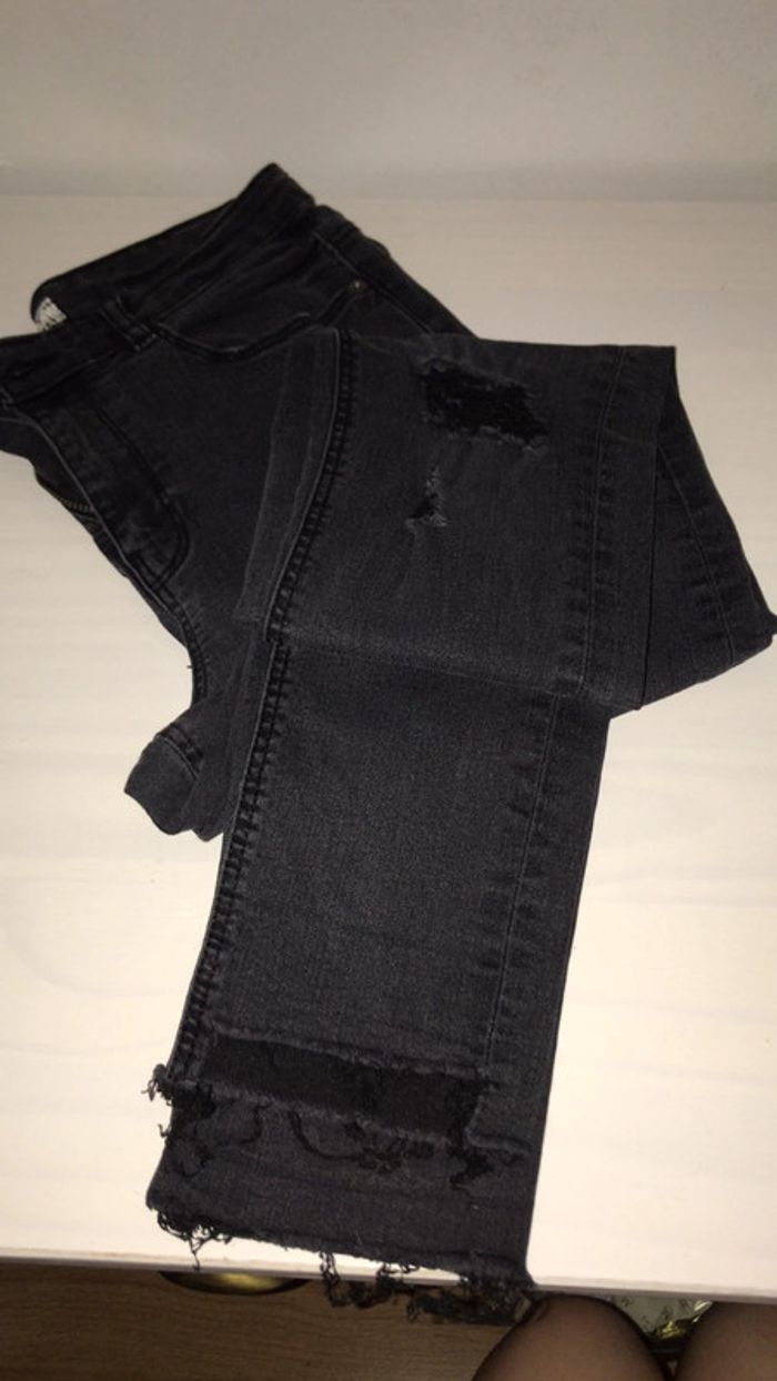 Jean noir avec des trous aux genoux en très bon état. Taille : 38 Possibilité d’offre et de lot.