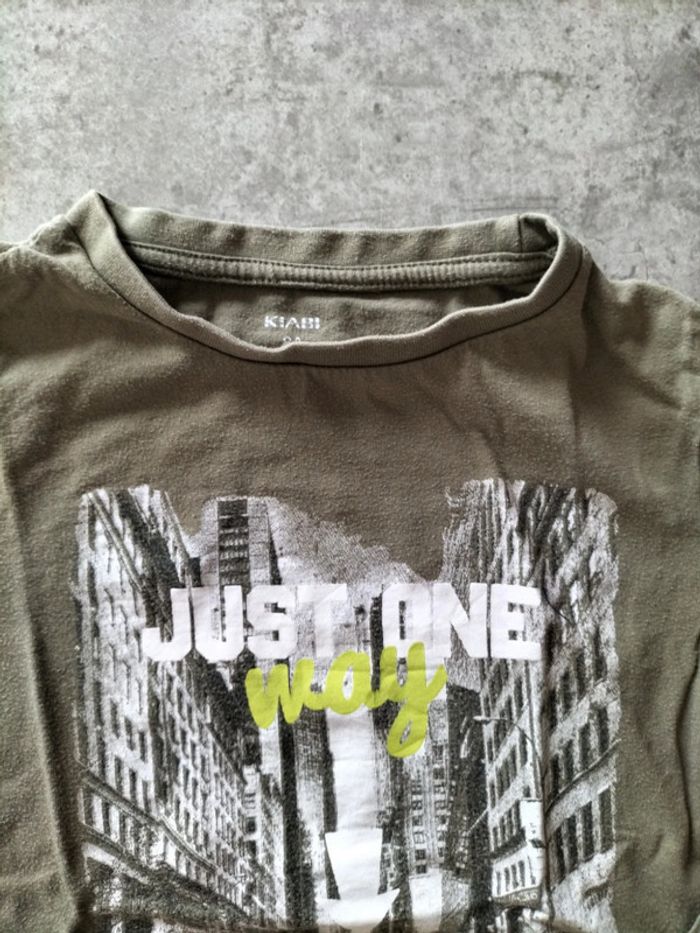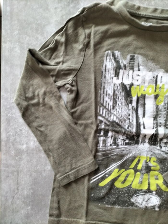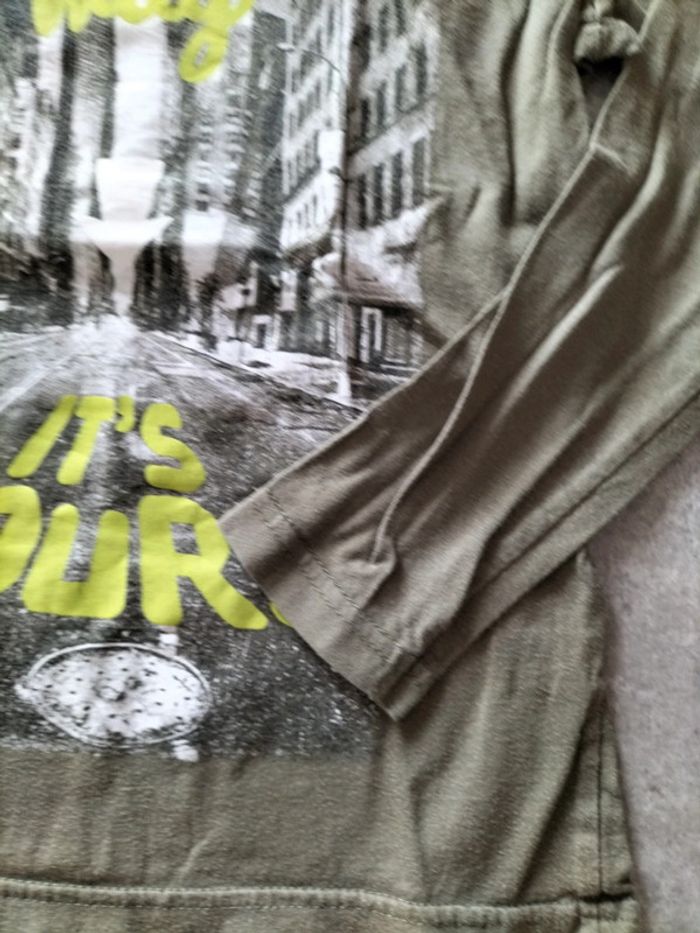 Tee-shirt vert manches longues avec gros motif devant. #fanfangarcon8@fanfan35320