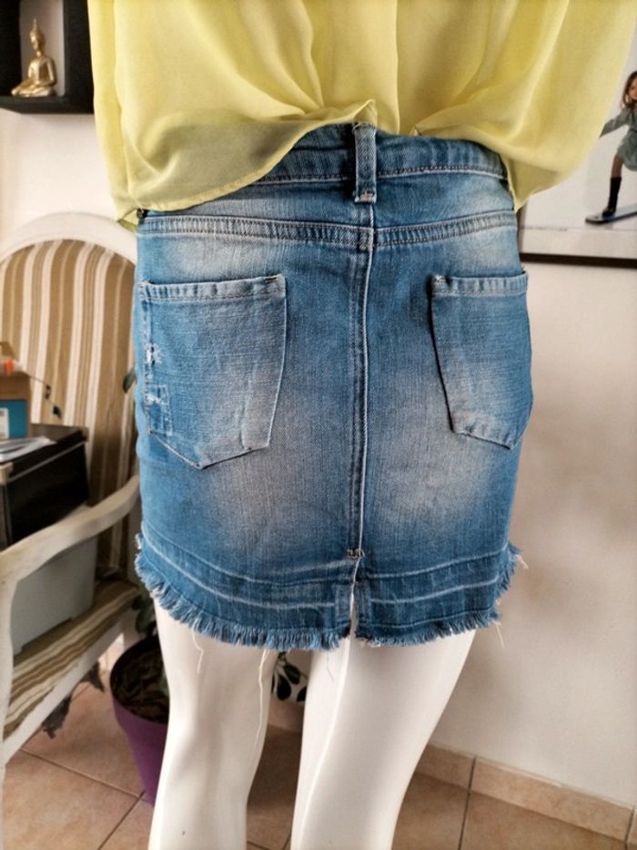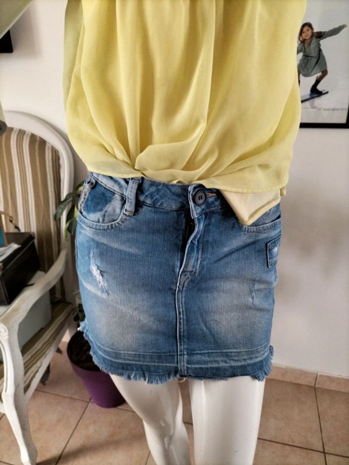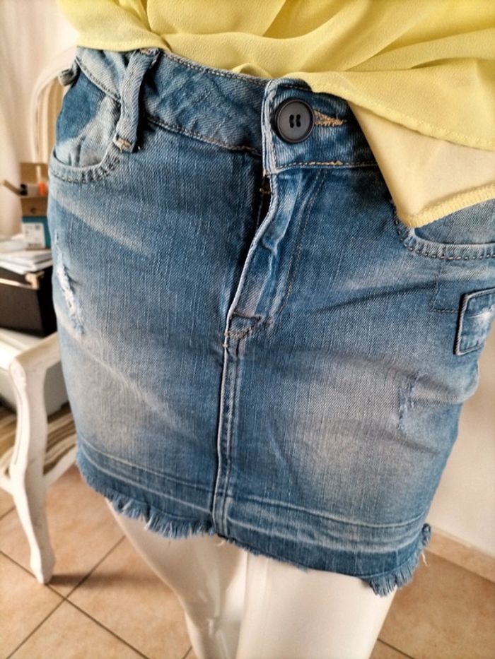 Jupe courte en jean en coton et un peu d élasthane #fanfanfemme34@fanfan35320