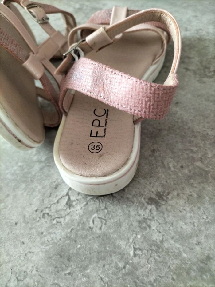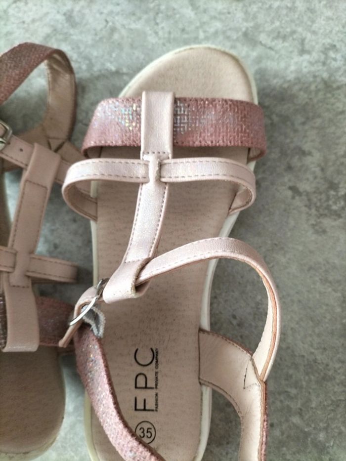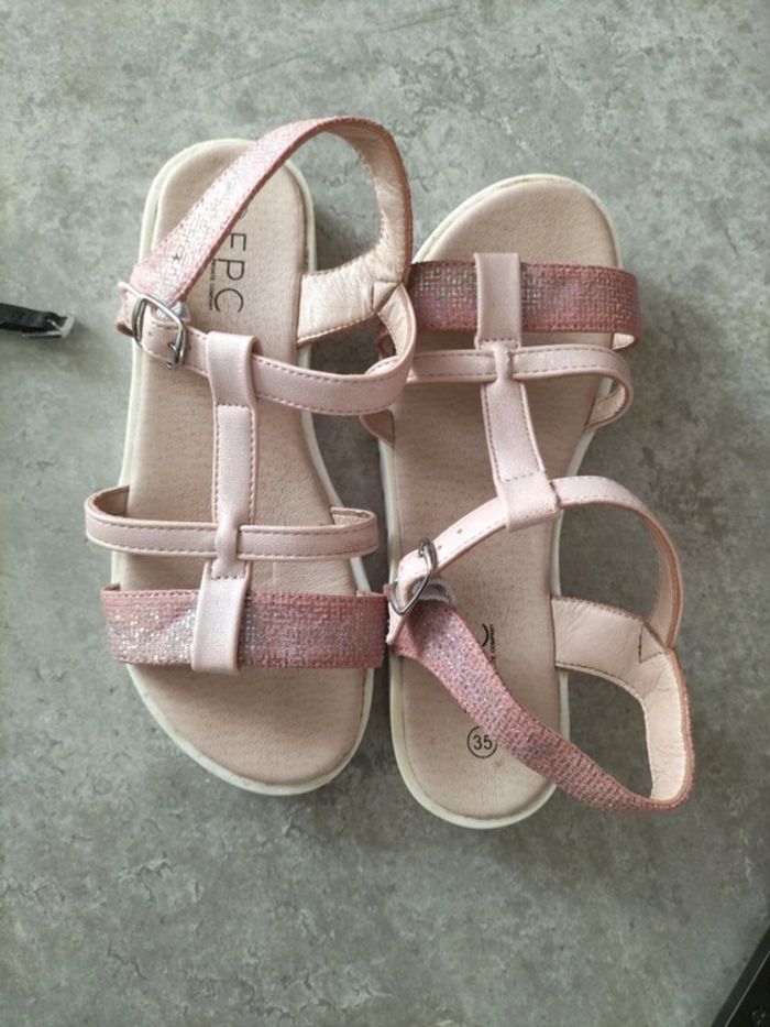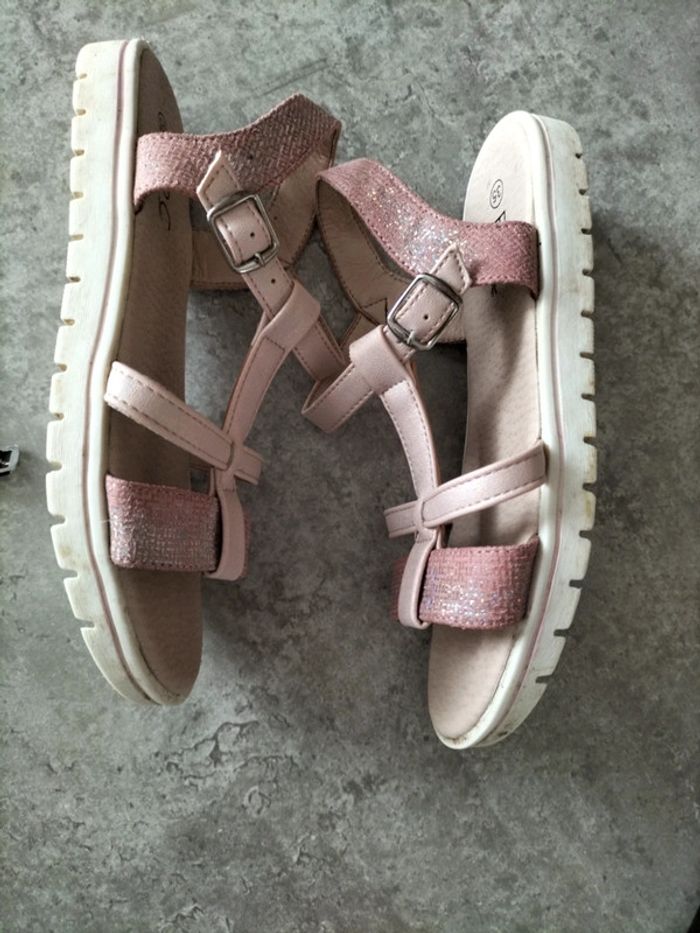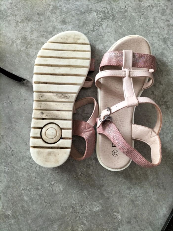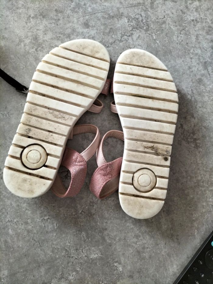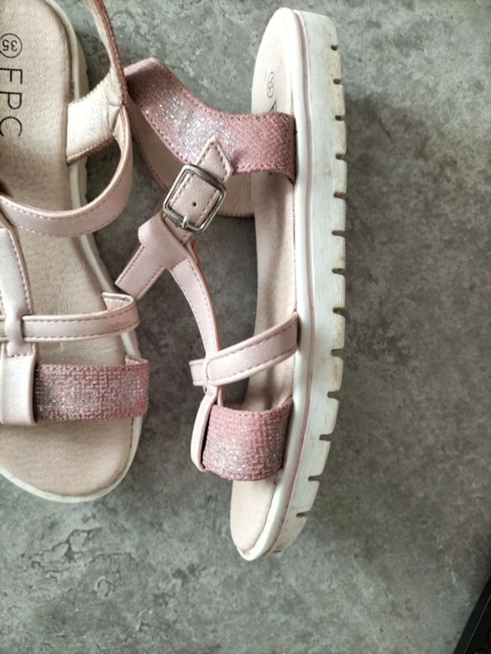 Sandales roses sur semelle blanche Quelques tâches sur la semelles #fanfanfille35@fanfan35320