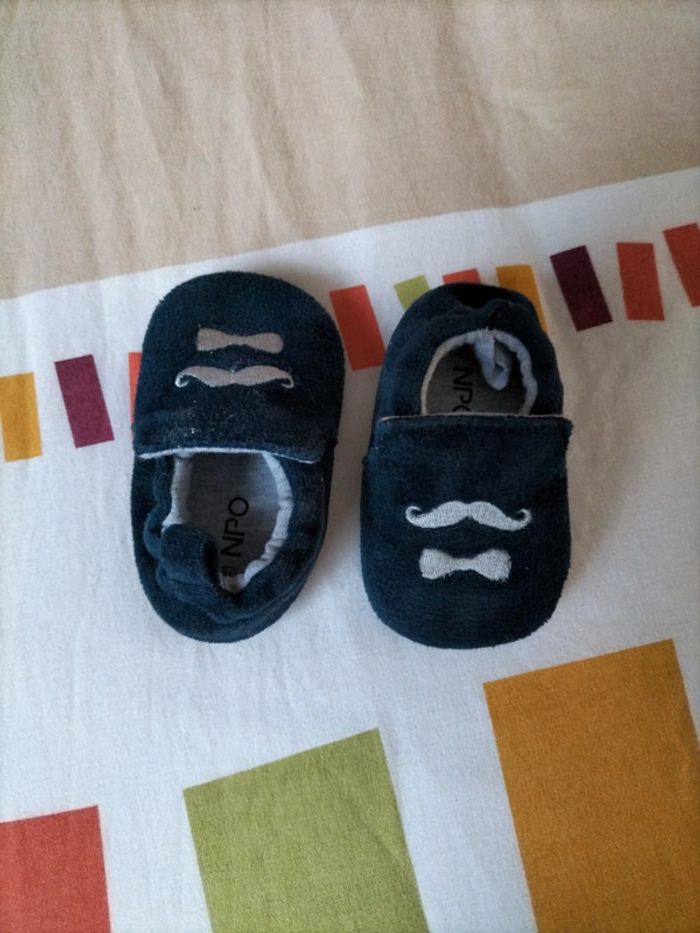 Chausson en velours bleu moustache élastique autour pour agrandir l ouverture #fanfanchaussuregarcon19@fanfan35320