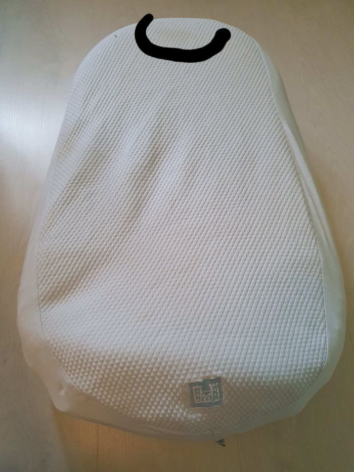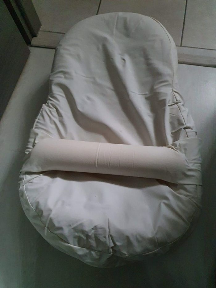 Coussin red castel il manque la ceinture Vendu avec une "couverture" couleur taupe Draps bleu clair il y a une tache "propre" jaunatre qui ce voit légèrement sur la photos. A voir si elle peut partir