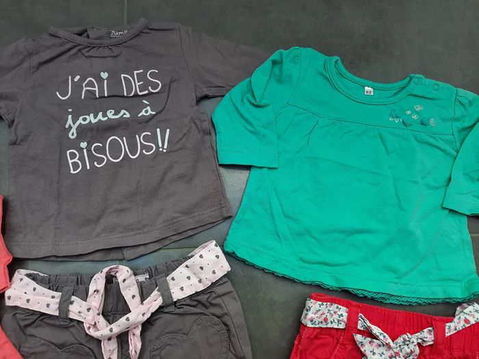 A vendre lot primptemps taille 3 mois en excellent état. 2 pantalons fins en toile et 3 maillots manches longues. Maison non-fumeur et sans animaux.
