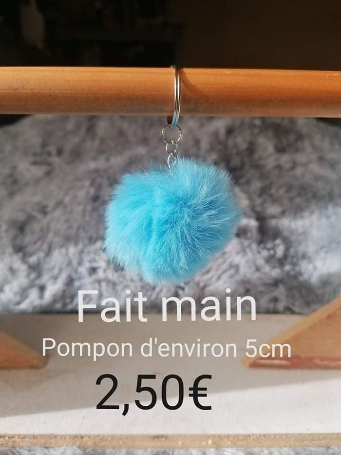 Porte clé avec un pompon d'environ 5cm bleu clair
