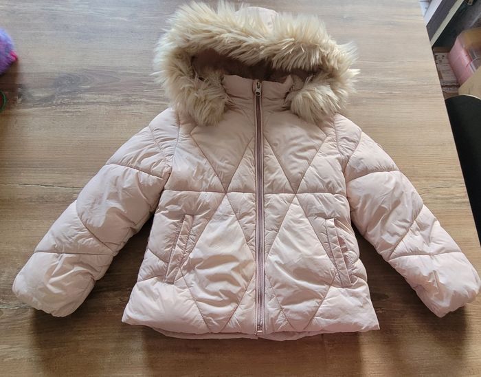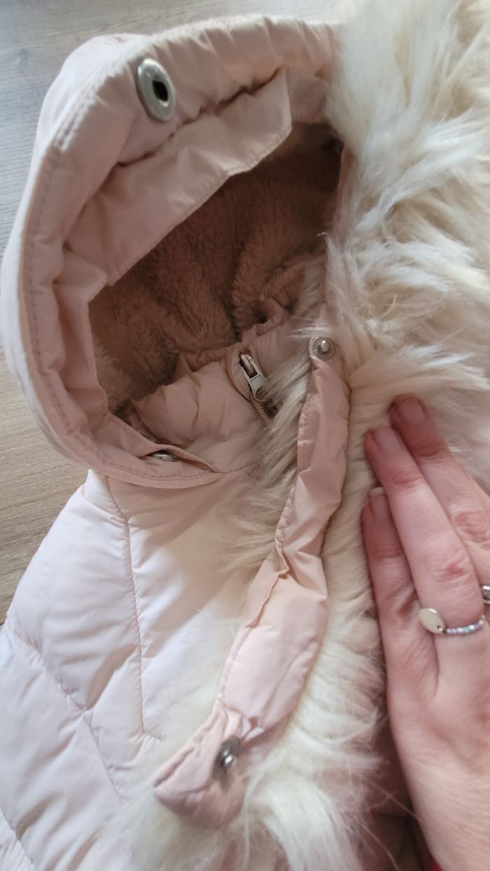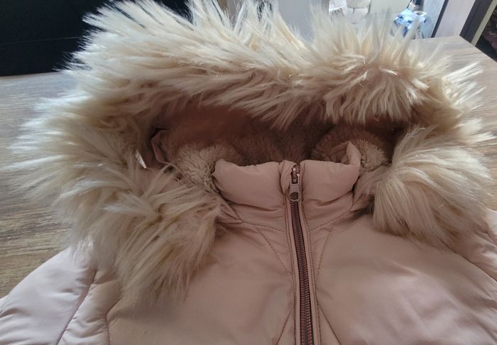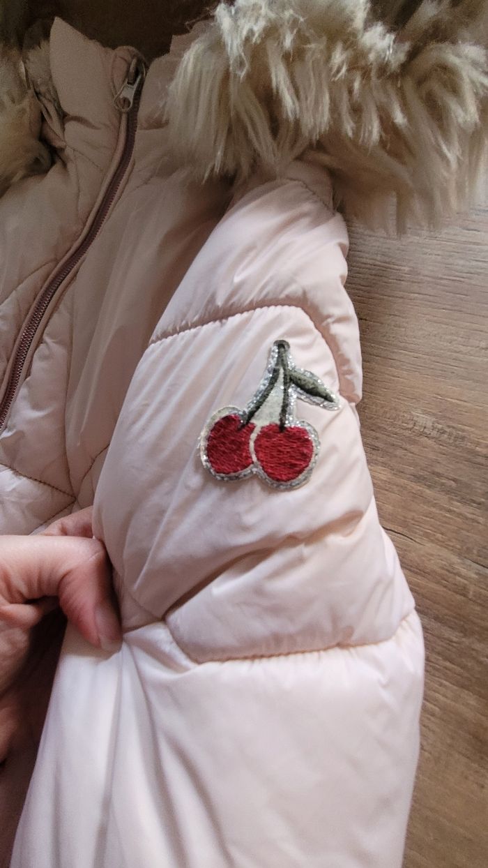 Jolie doudoune avec capuche Fourrure à la capuche amovible par pressions Broderie cerises sur un bras #fille5anstattoogirl_3