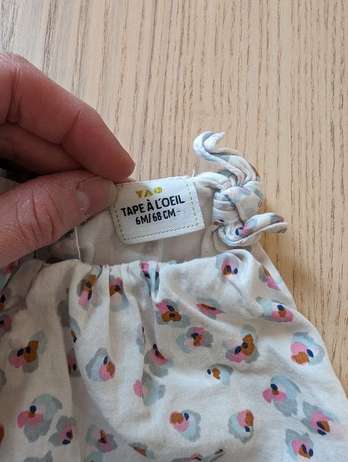 Combipantalon Marque Tape a l'oeil TAO. Taille 6mois/68cm. Très bon état porté une ou deux fois, noeud de gauche légèrement sale comme sur la dernière photo. #tennyteb6mois