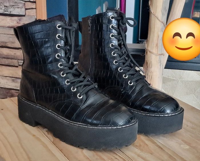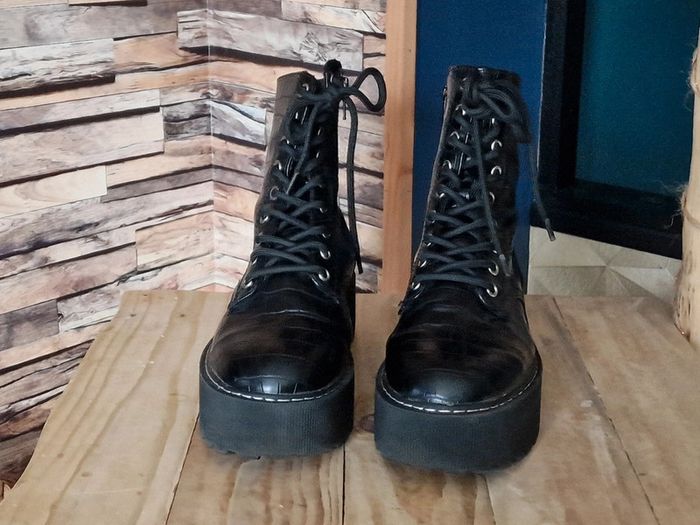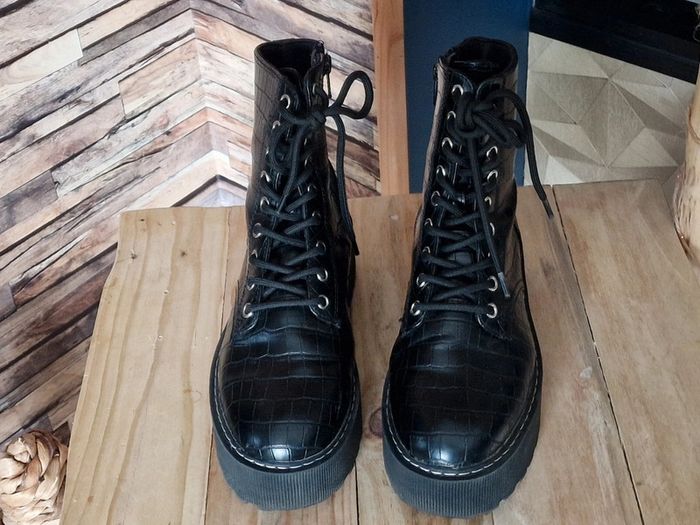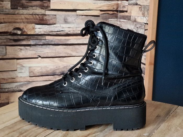 Bottine style croco à lacets DIVIDED de chez H&M Les tâches blanches sur les photos , se sont les reflets