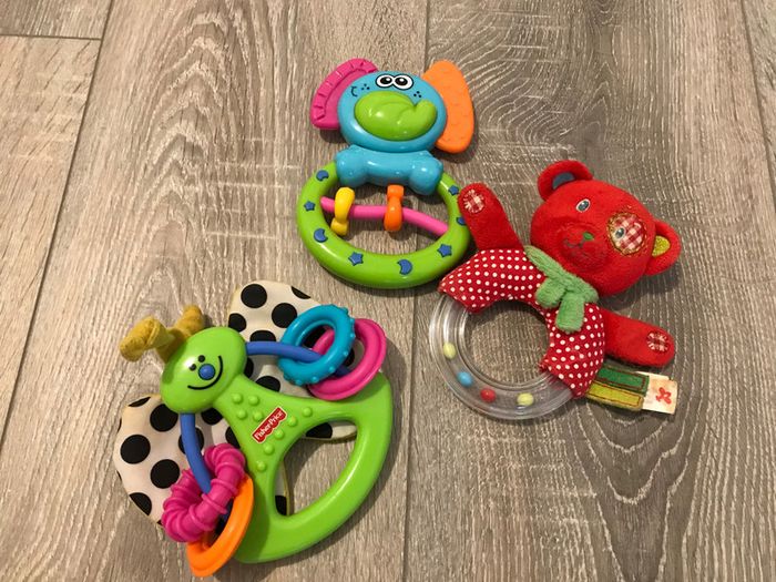 différentes formes et marques éveil sensoriels très bon état lavables autres jeux et jouets visibles ici #equipementraphnoe #hochets #jeuxraphnoe #hochetbebe