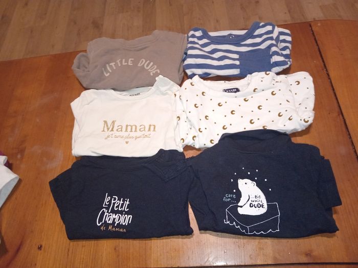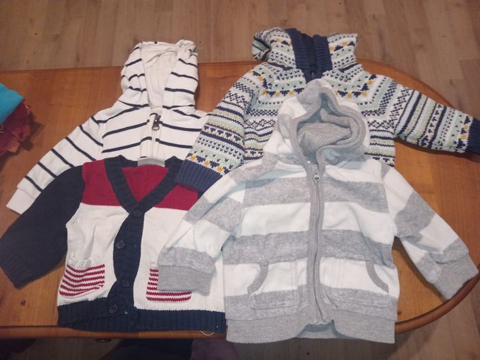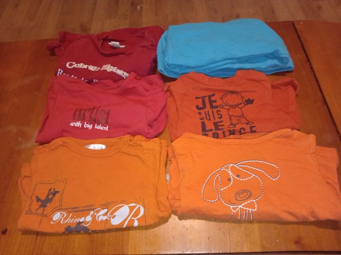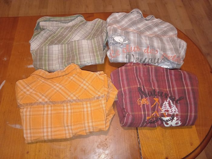 1 lots de 4 tee short 1 lots de 4 gilet 2 lots de 6 pulls 1 lots de 5 pulls 1 lots de 4 chemises Il y a toutes sorte de marque