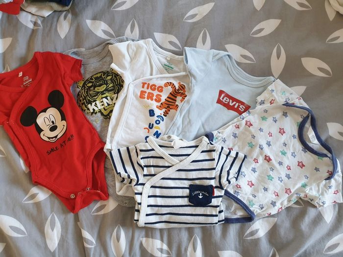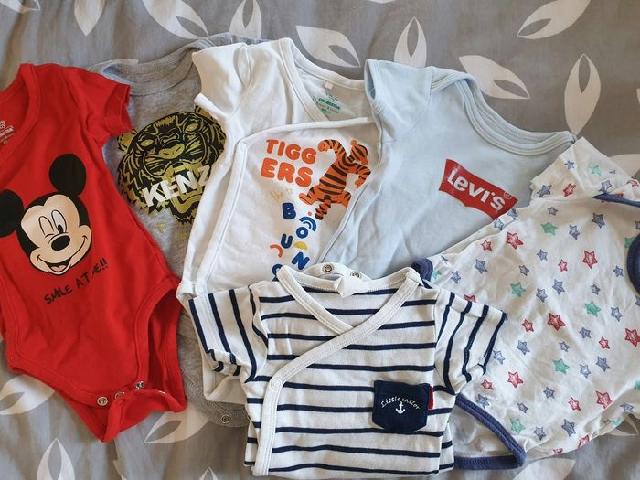 Lot de 6 body de différentes marques . Orchestra. H&M... Taille 3 mois. Sauf le rayé h&m en taille 1-2mois.