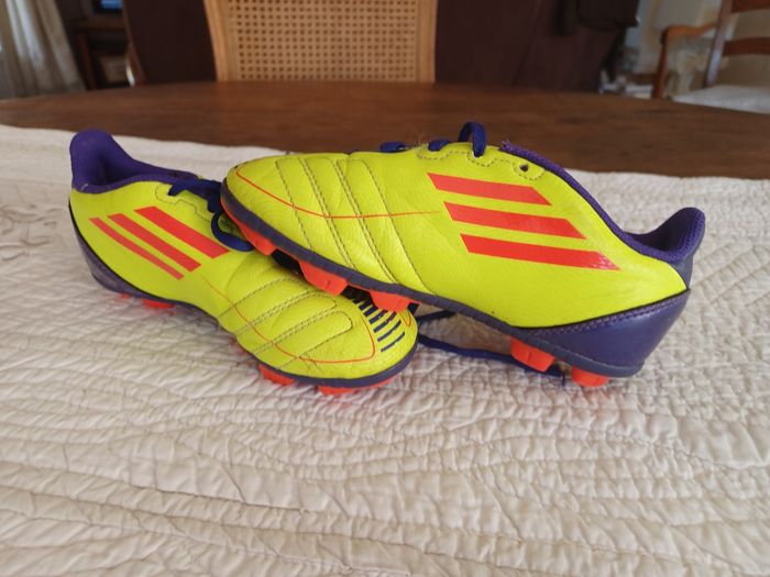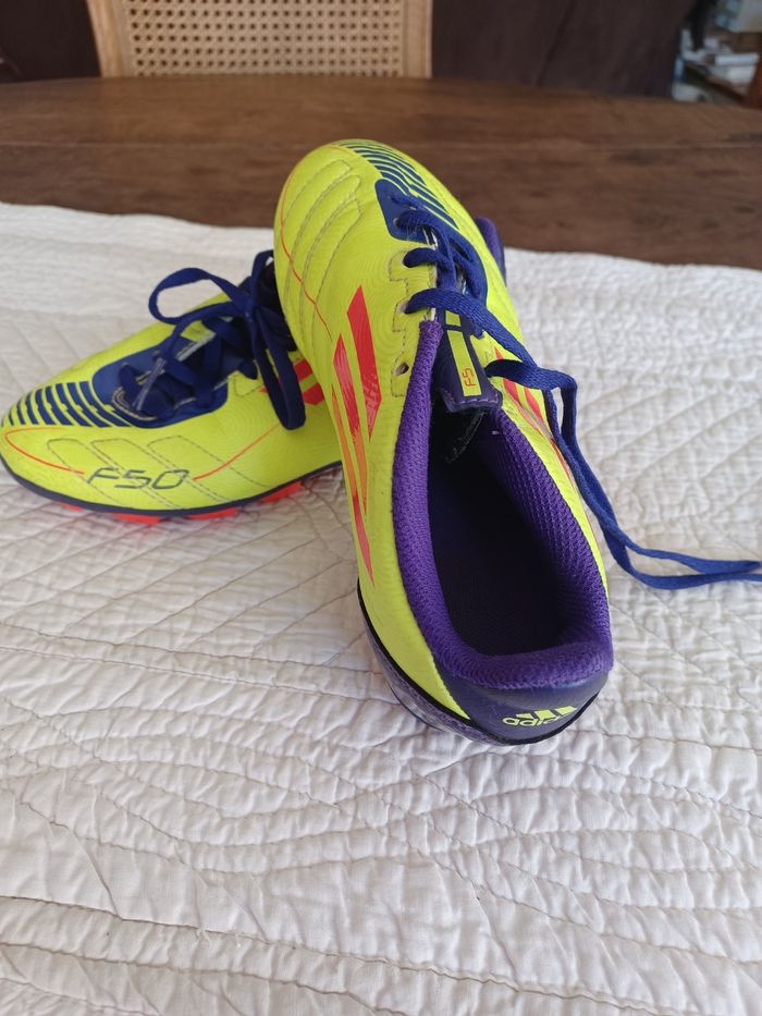 Chaussures adidas t 30 pratiquement neuve utilisé 2h.jaune rouge mauve avec lacets crampons très belle piece