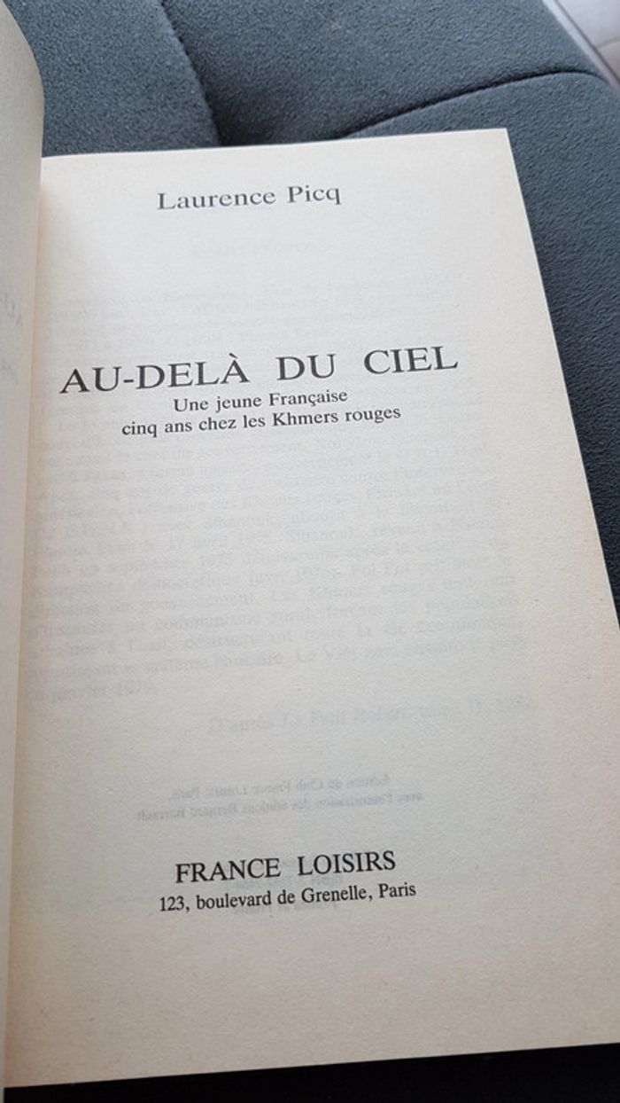 Vend livre Au dela du ciel une jeune française cinq ans chez les khmers rouges Les pages de lecture sont en bon état Sauf sur les côtés voir photos Ne gêne en rien
