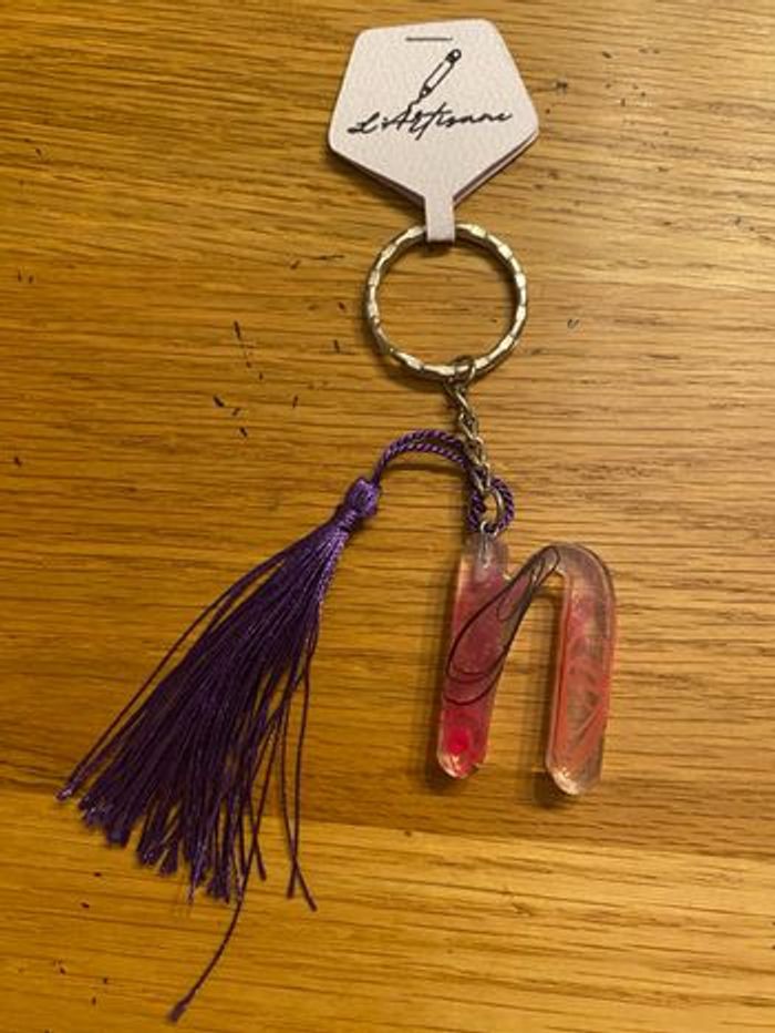 Porte clé lettre N Avec pompon Environ 4 cm idée cadeau Neuf