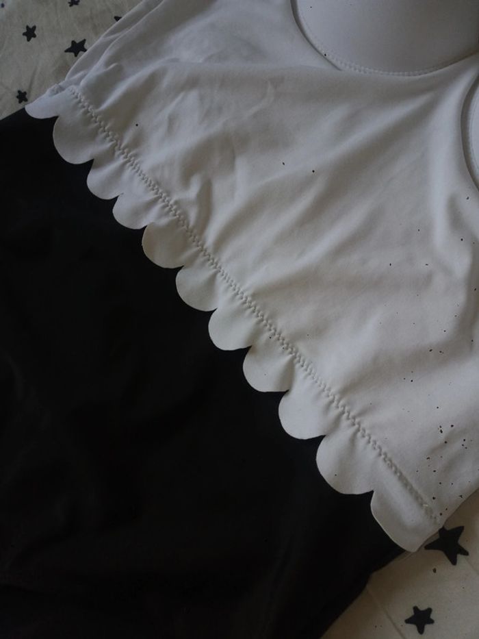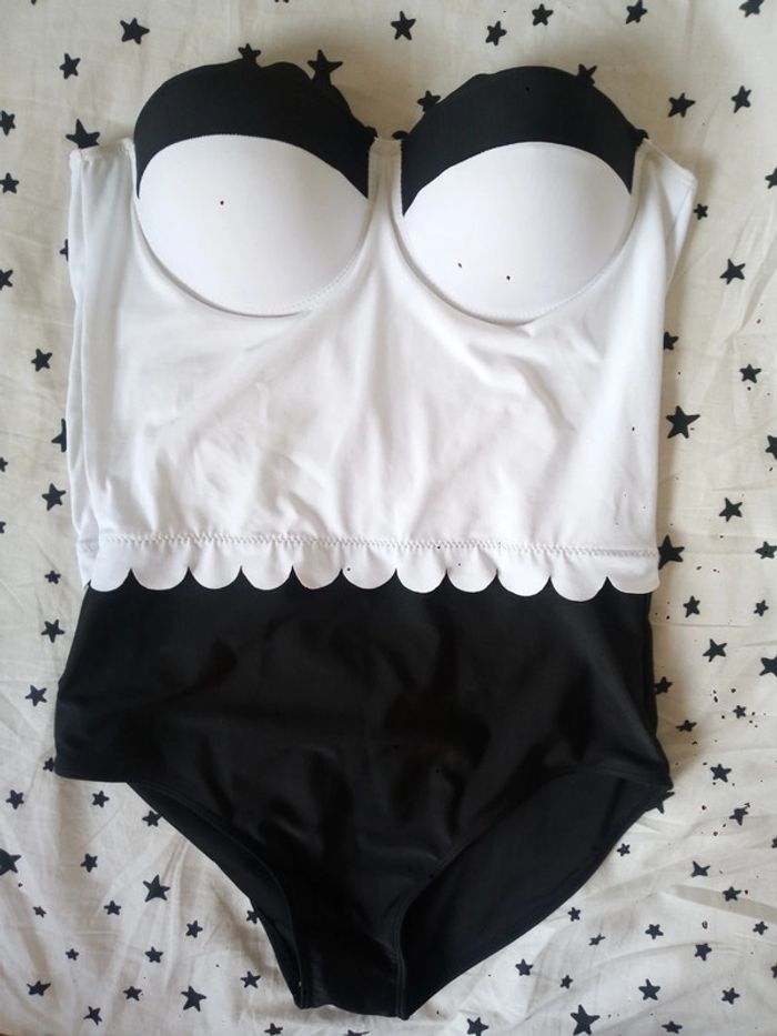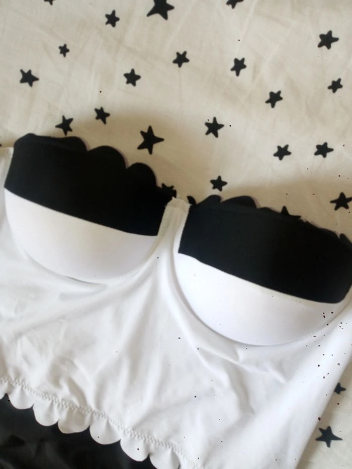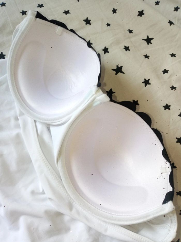 Porté que pour les photos, avec soutien gorge (trop petit). Bonnet C-D push-up Soutient bien la poitrine même sans bretelles. Des bretelles peuvent être attachées.