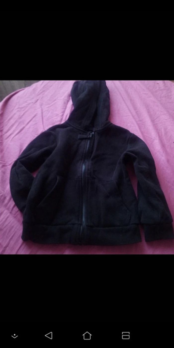 Sweat-shirt à capuche Taille 2-4 ans. Transfert posé à l'arrière, de bonne qualité, tient bien au lavage. 2 poches, capuches, fermeture éclair. Mixte