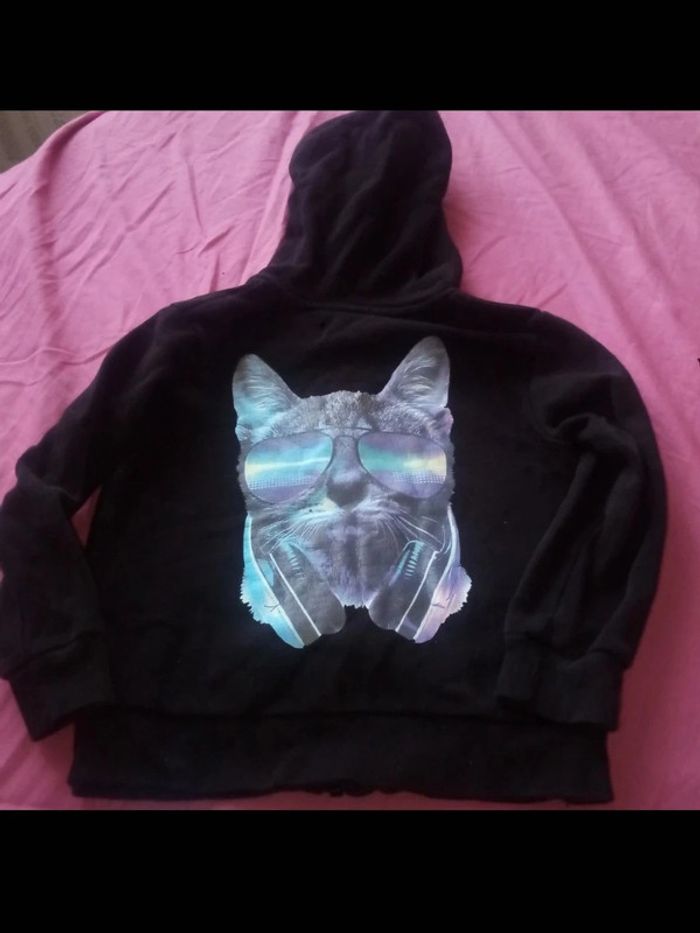 Sweat-shirt à capuche chat casques lunettes soleil - photo numéro 5