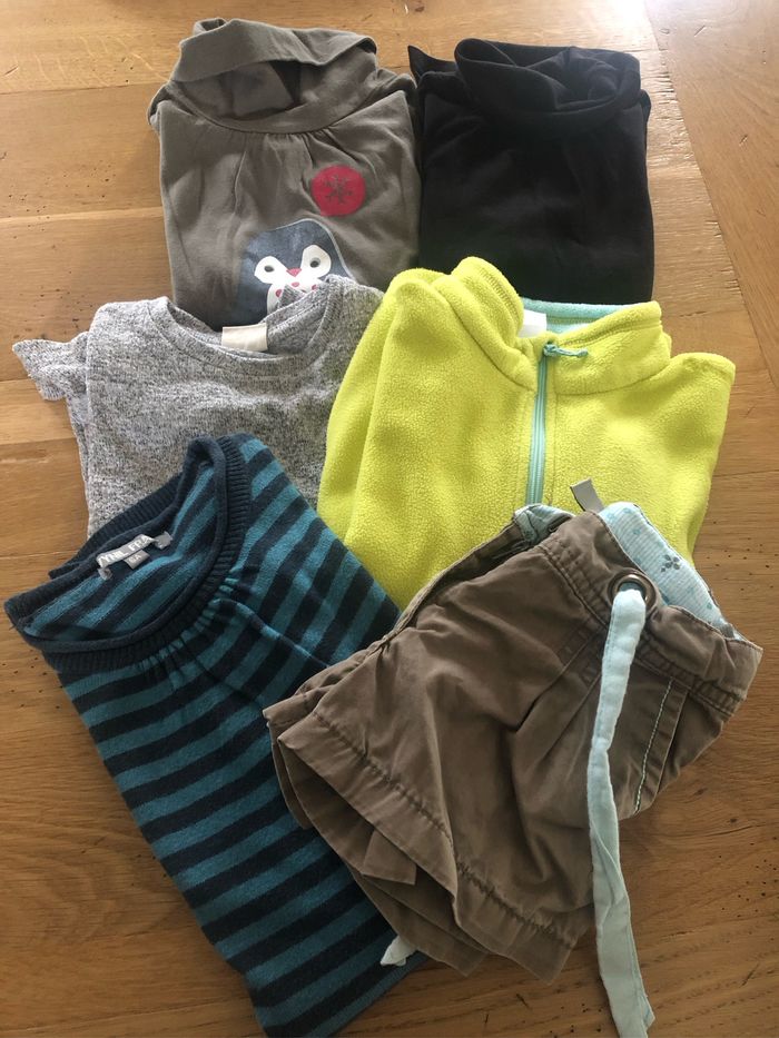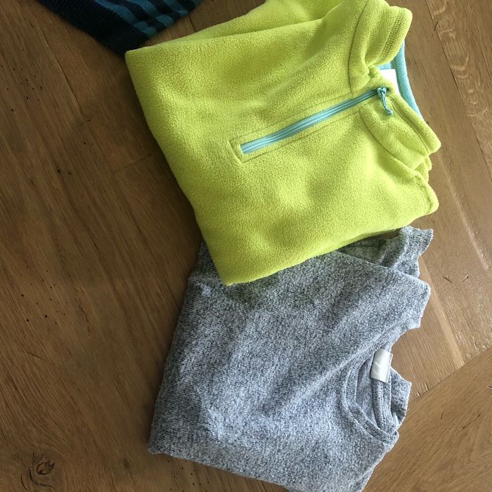 2 sous pull 2 pull 1 short 1 robe en lainage fin Okaidi Zara Vynil fraise Décathlon