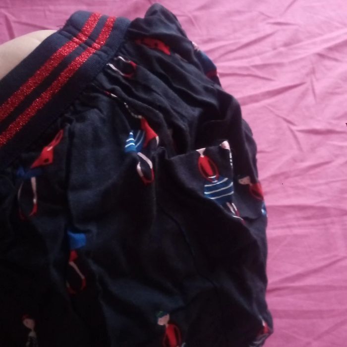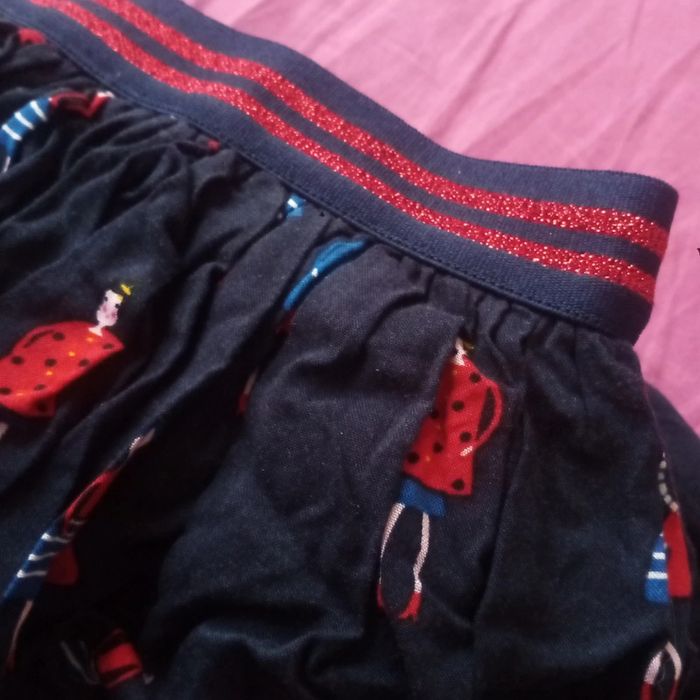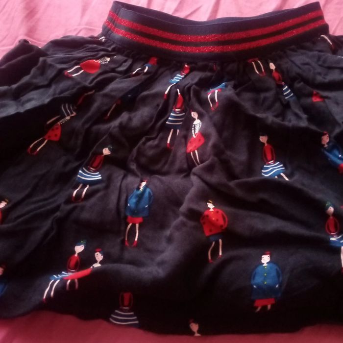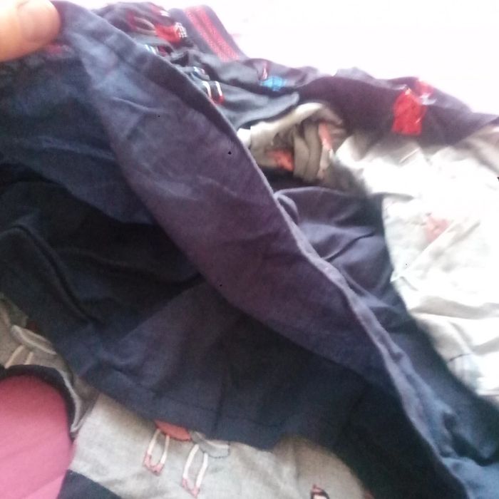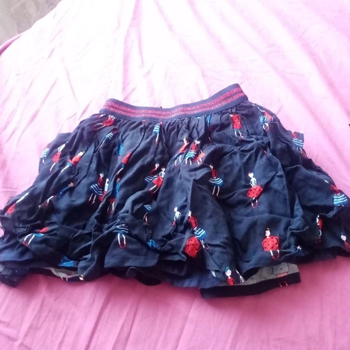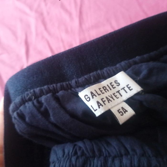 Taille 5 ans, bleue marine, doublée. Jamais portée !!! (reçue trop petite) Deux poches de chaque côté. J'espère trouver le temps de la repasser et refaire des photos...