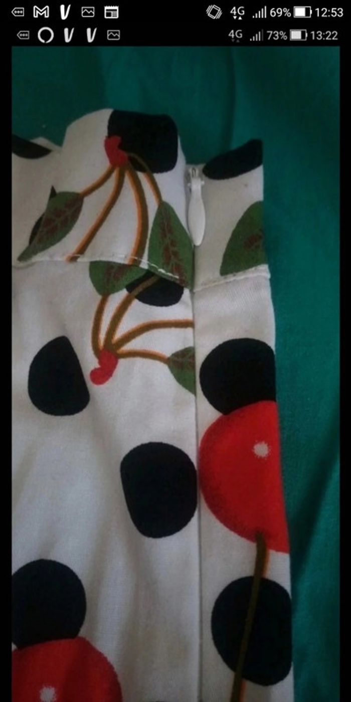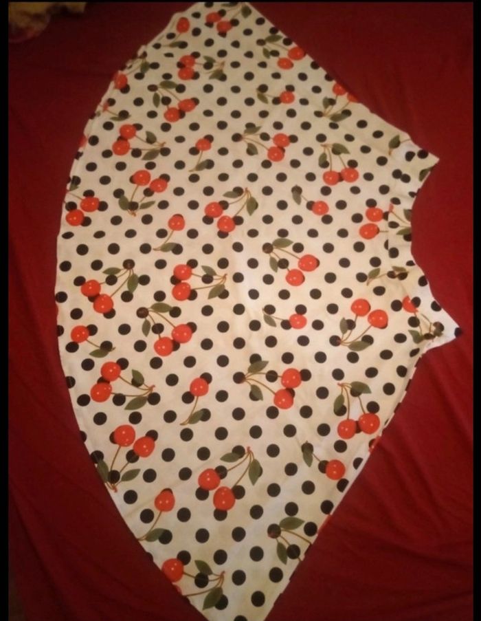 Taille 42-44, voir dimensions plus bas. 3/4 de cercle. En coton stretch. Portée que pour la photo. Petit défaut d'impression,voir les 2 dernières photos. En coton stretch Fermeture éclair latérale Dimensions à plat : Longueur 59 cm Taille 83 cm