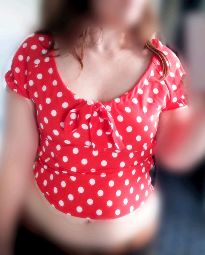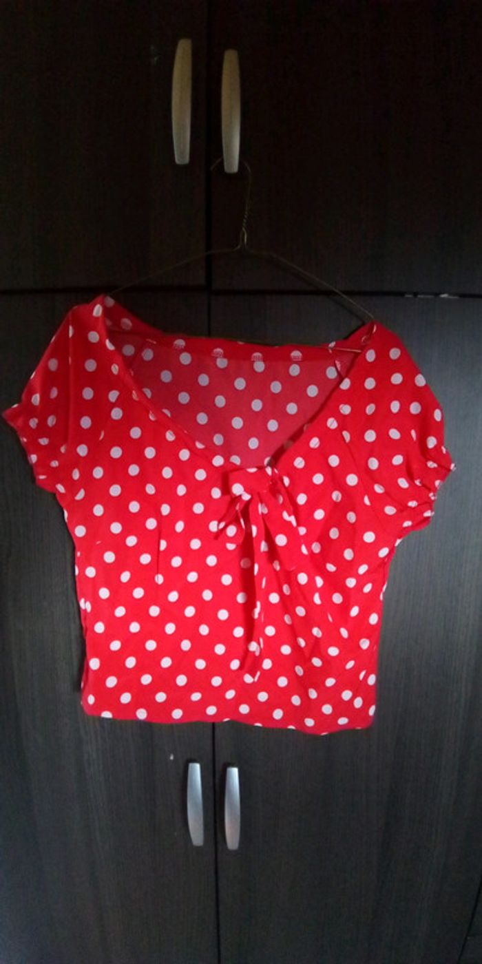 Crop top rouge à pois et noeud pin-up - photo numéro 1