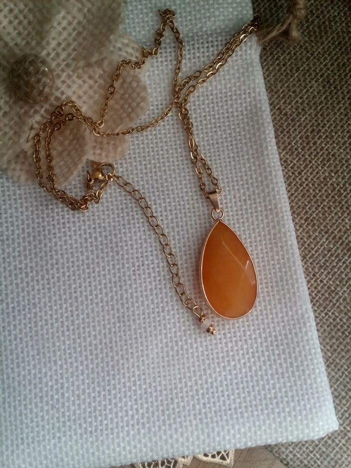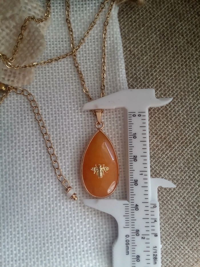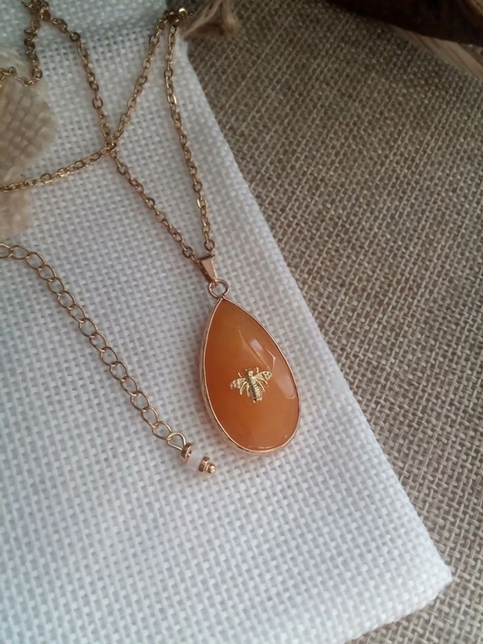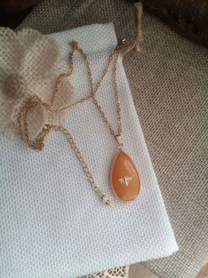 Collier pierre goutte d'agate réversible abeille 🐝. - photo numéro 4