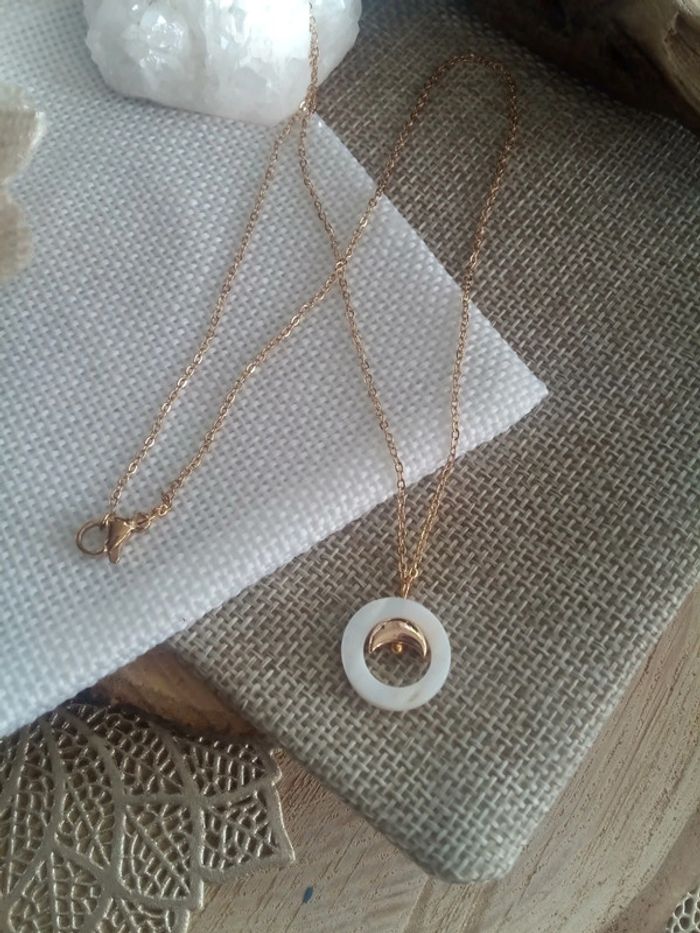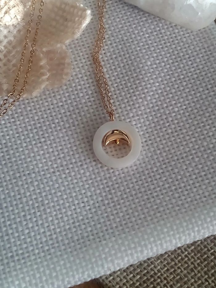 Collier cercle de n'a'c'r'e et petite lune hématite 🌙. - photo numéro 3