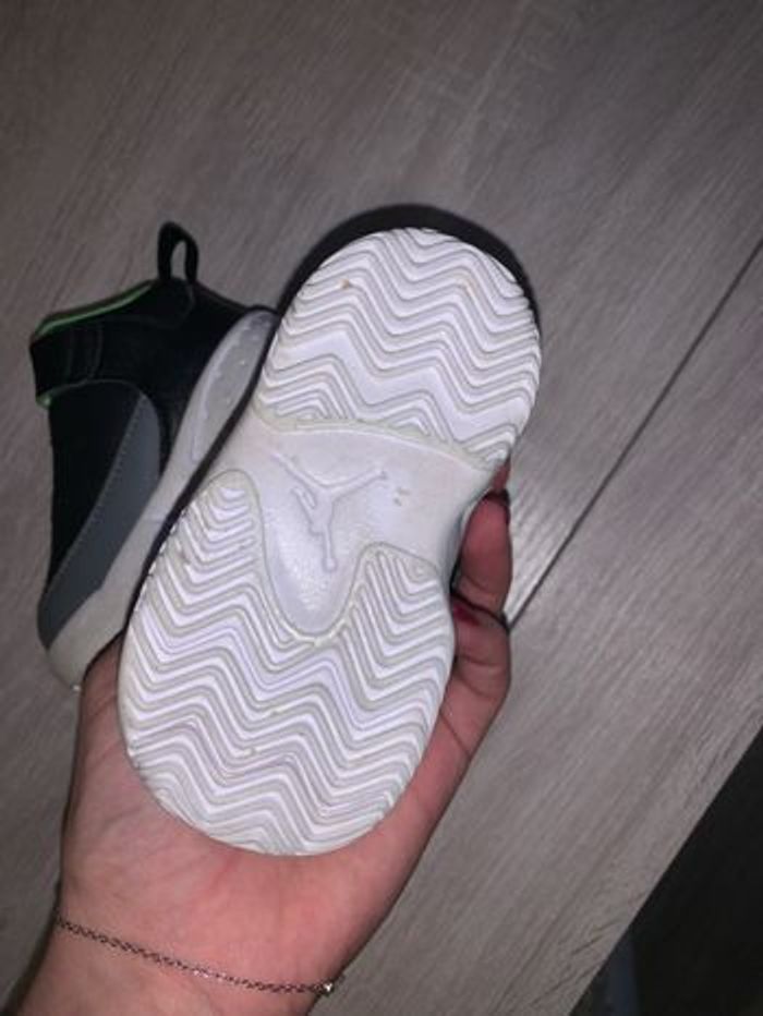 Basket Jordan taille 19,5 semelle niquel. À scratch Simplement petit accro sur le devant de la chaussure. Vaut 70€ en magasin